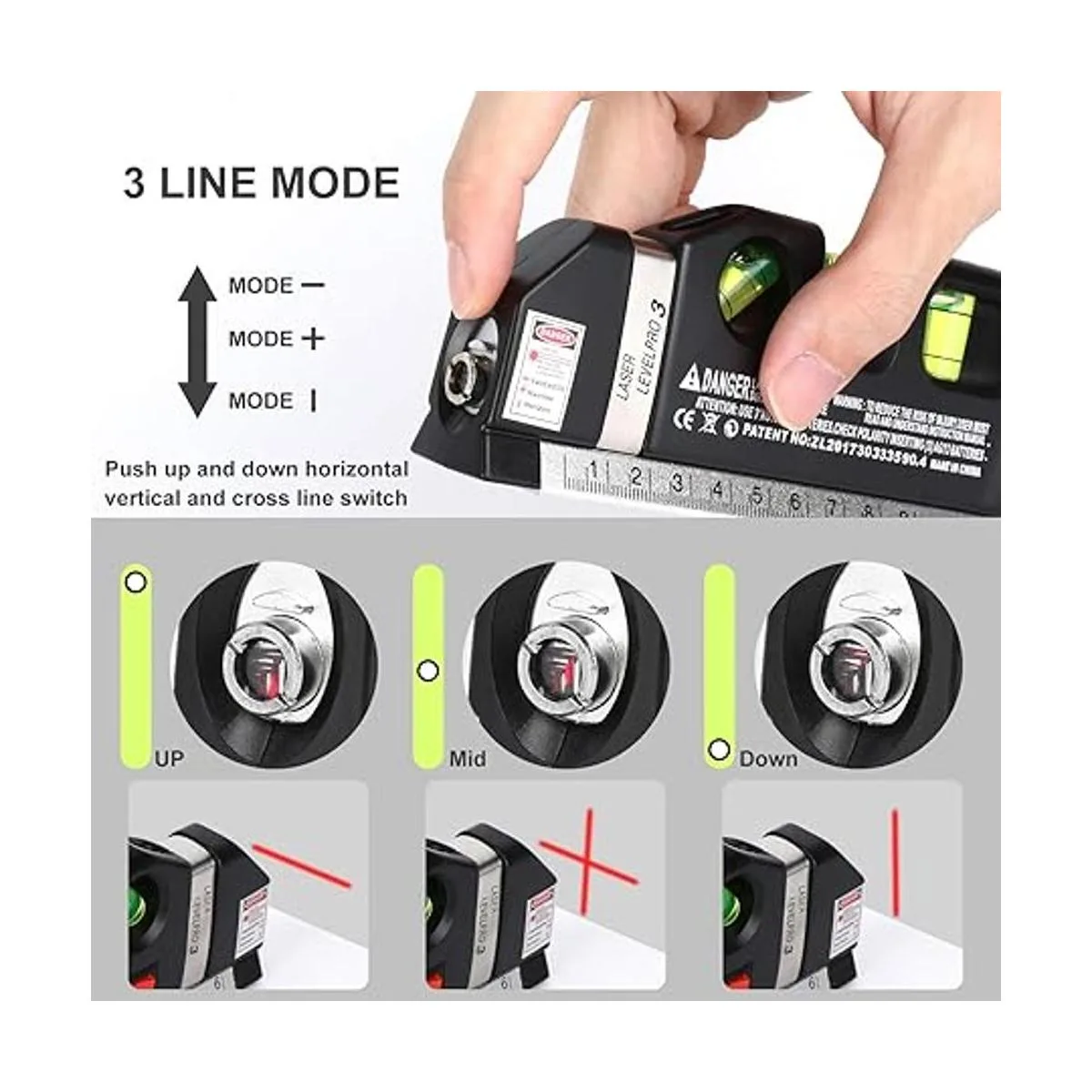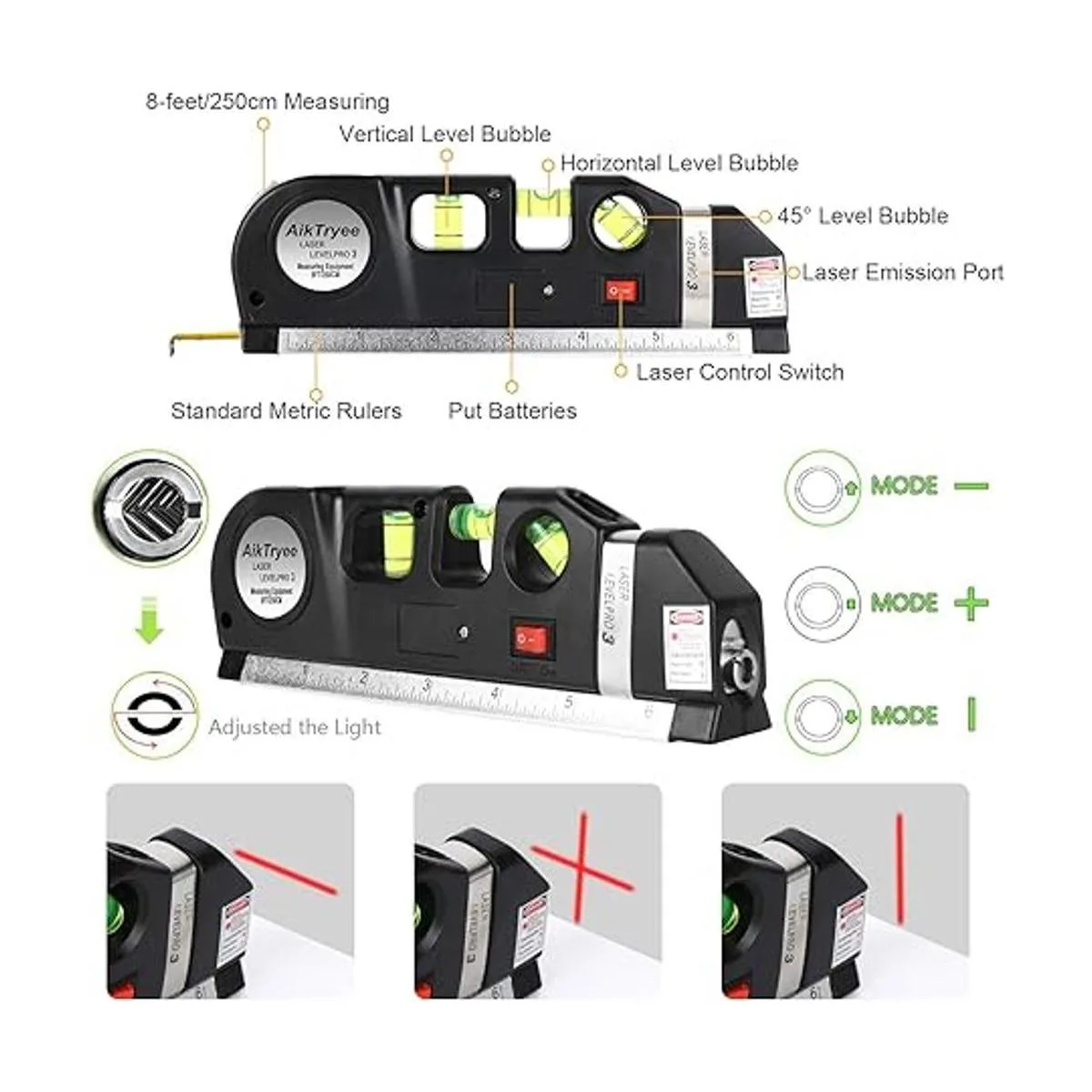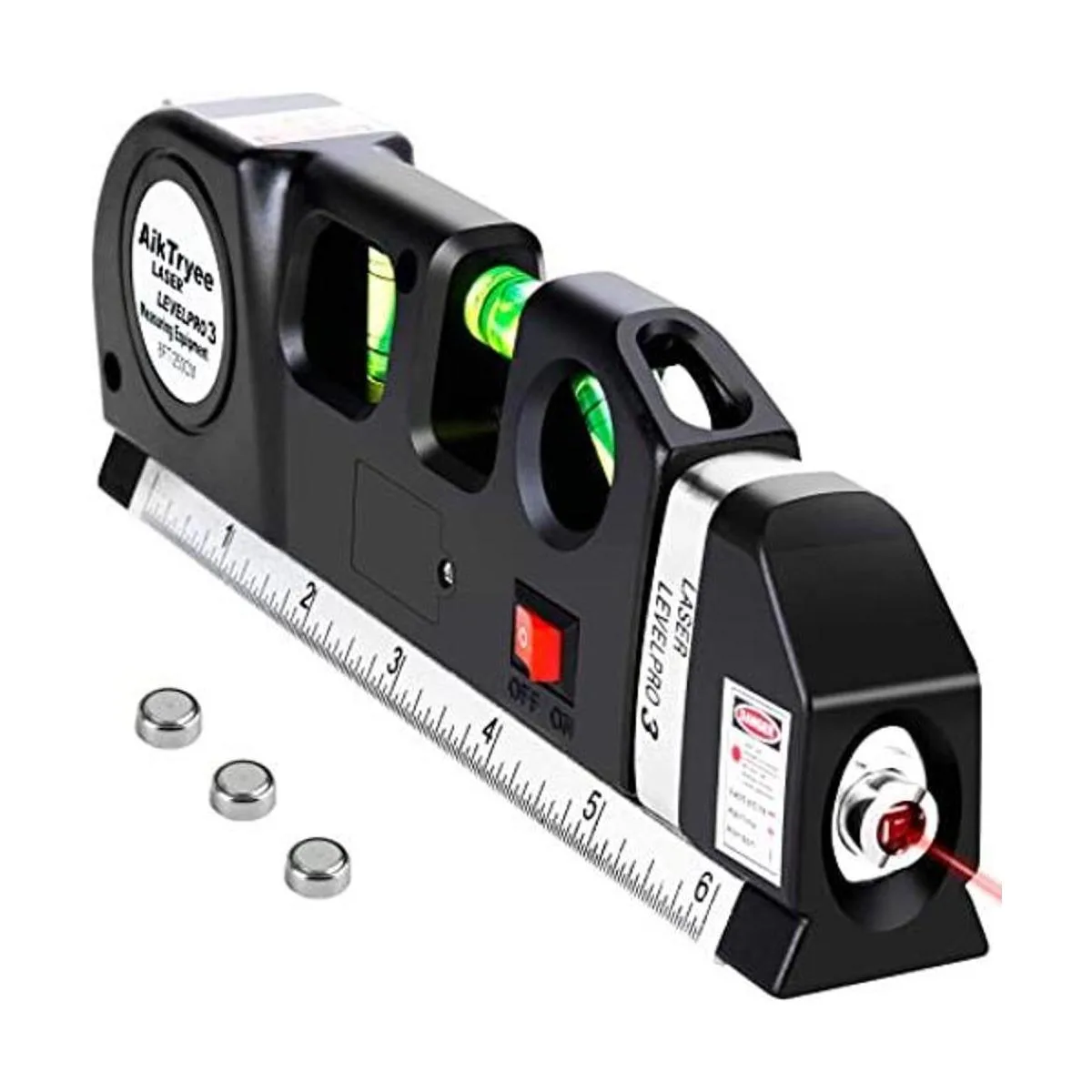 Herramienta de línea de nivel láser multiuso, kit de nivel láser de línea cruzada estándar, nivelador de línea láser, herramienta de haz con reglas métricas de 8 pies2.5 metros para colgar cuadros, armarios colgantes, colocar azulejos de AikTryee.