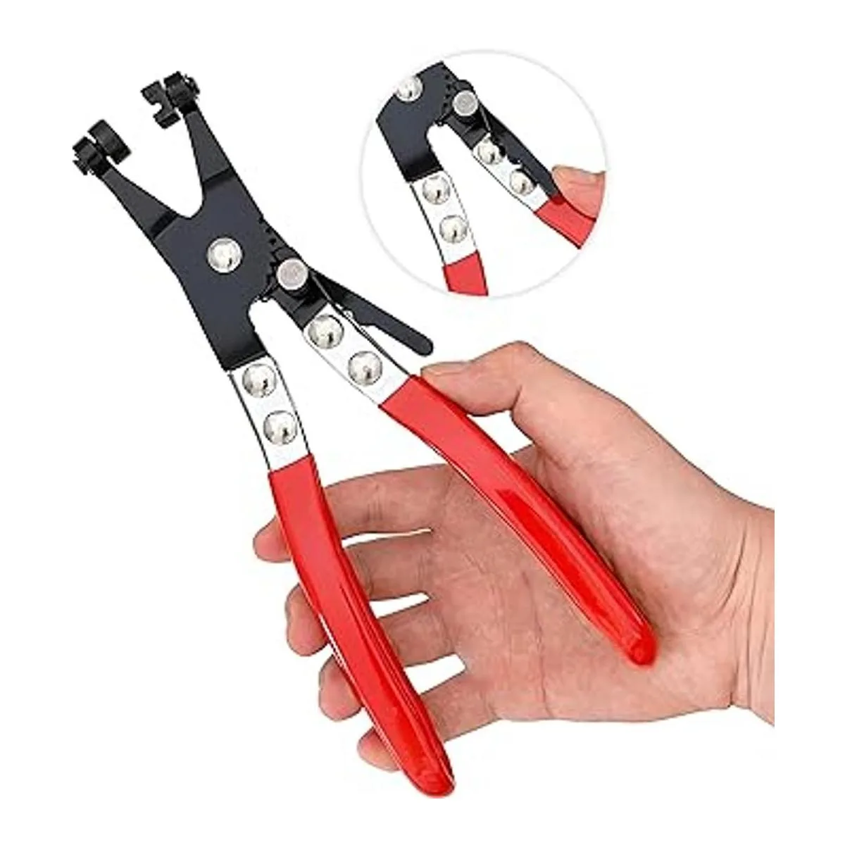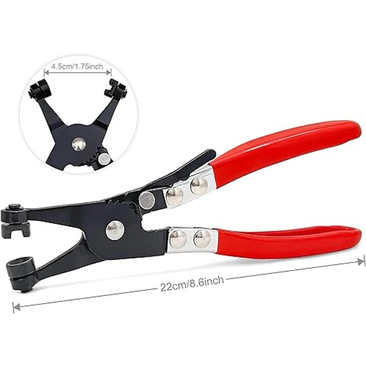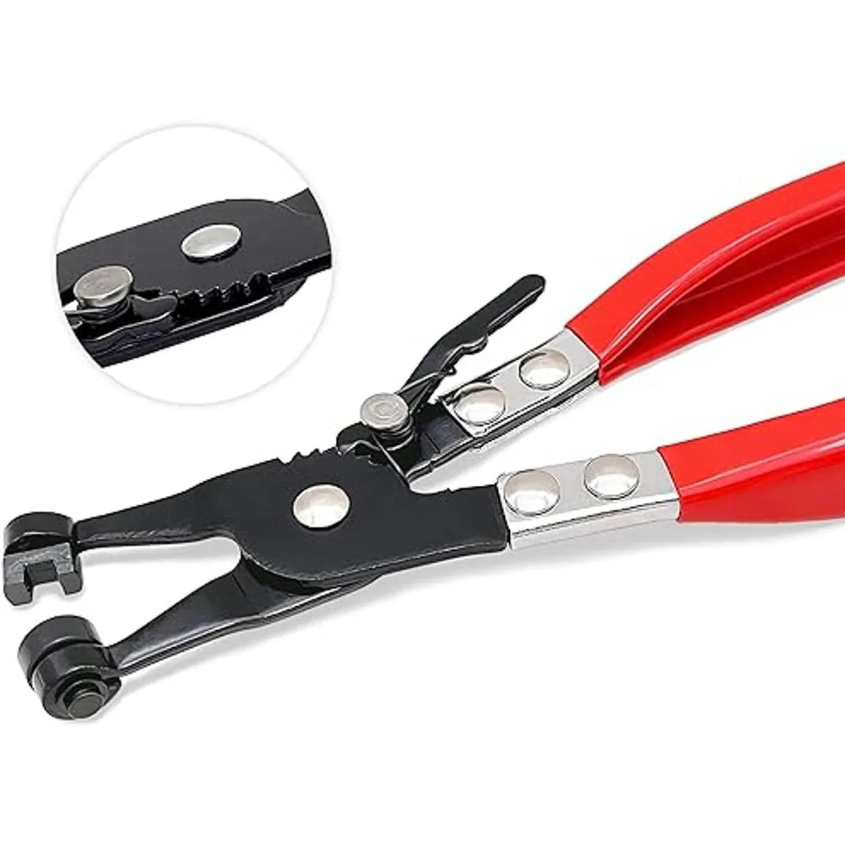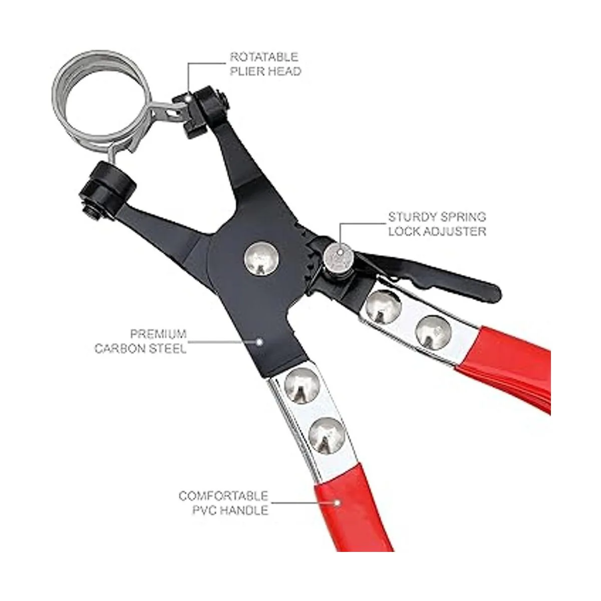 Herramienta de reparación de alicates de abrazadera de manguera con banda plana giratoria para extracción e instalación de abrazaderas de manguera tipo anillo o banda plana en calentador de radiador refrigerante automotriz y manguera de agua