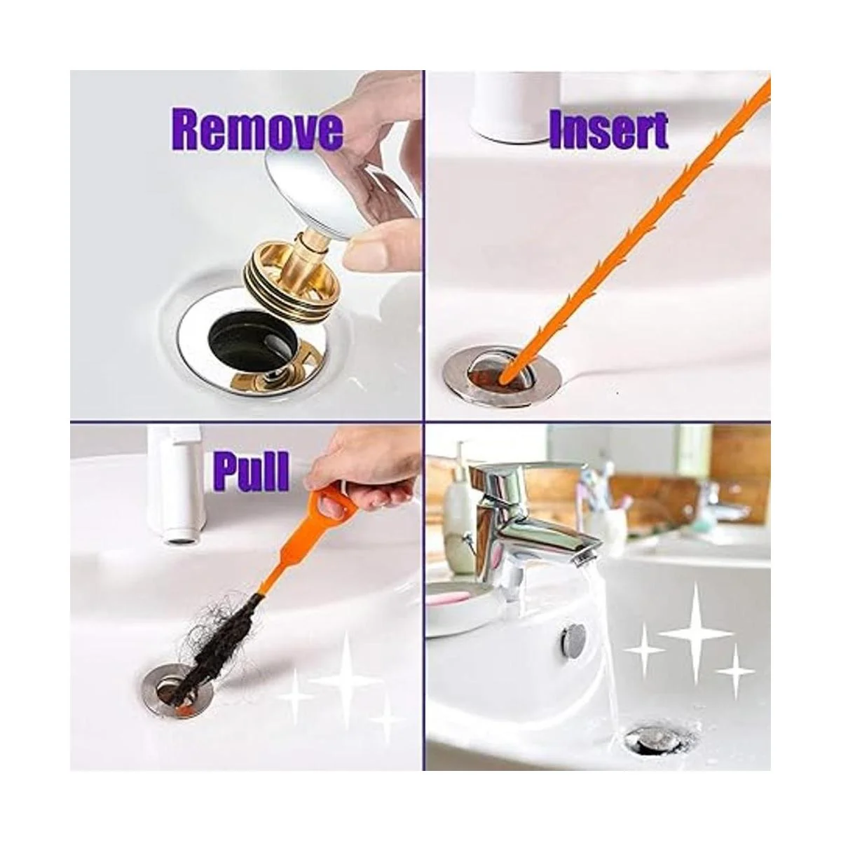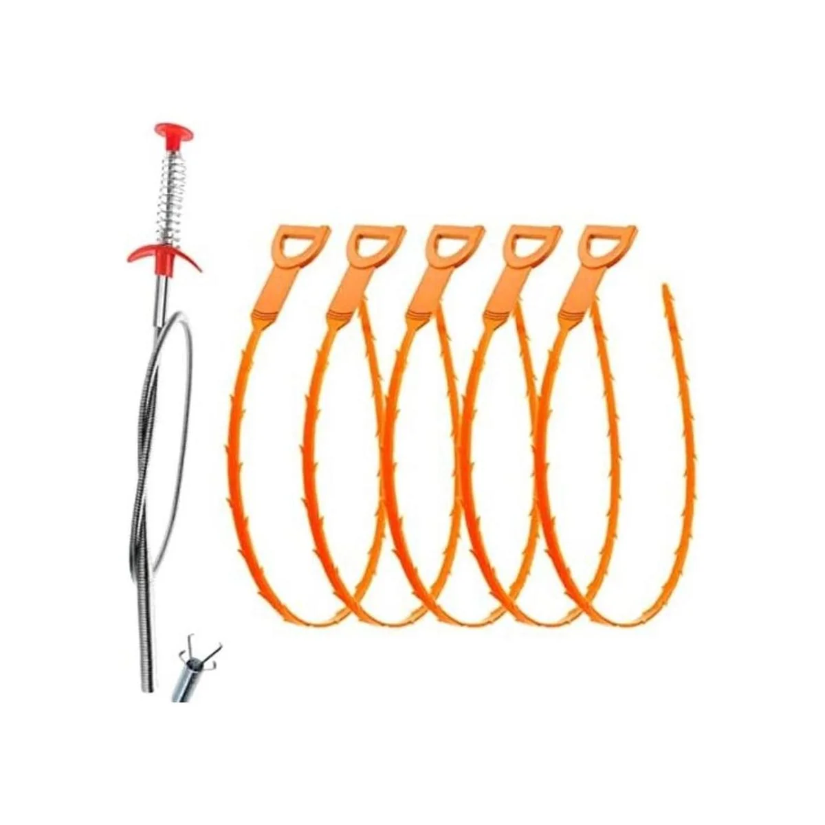 Herramienta limpiadora de drenaje, removedor de obstrucciones flexible, agarrador de pelo de 24 pulgadas naranja 61
