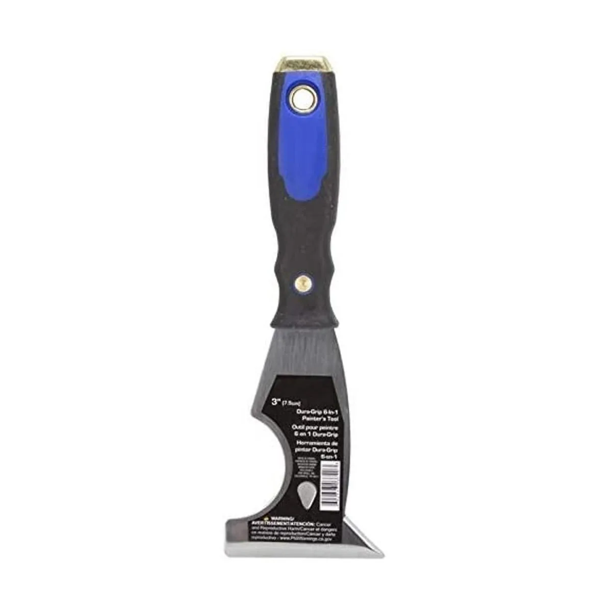 Herramienta para pinturas 6 en 1 de Edward Tools Rasqueta, removedor de masillas, esparcidor, medio corte redondo para eliminar la pintura del rodillo, punto afilado para abrir grietas para parches, mango de metal para fijación de uñas agarre suave