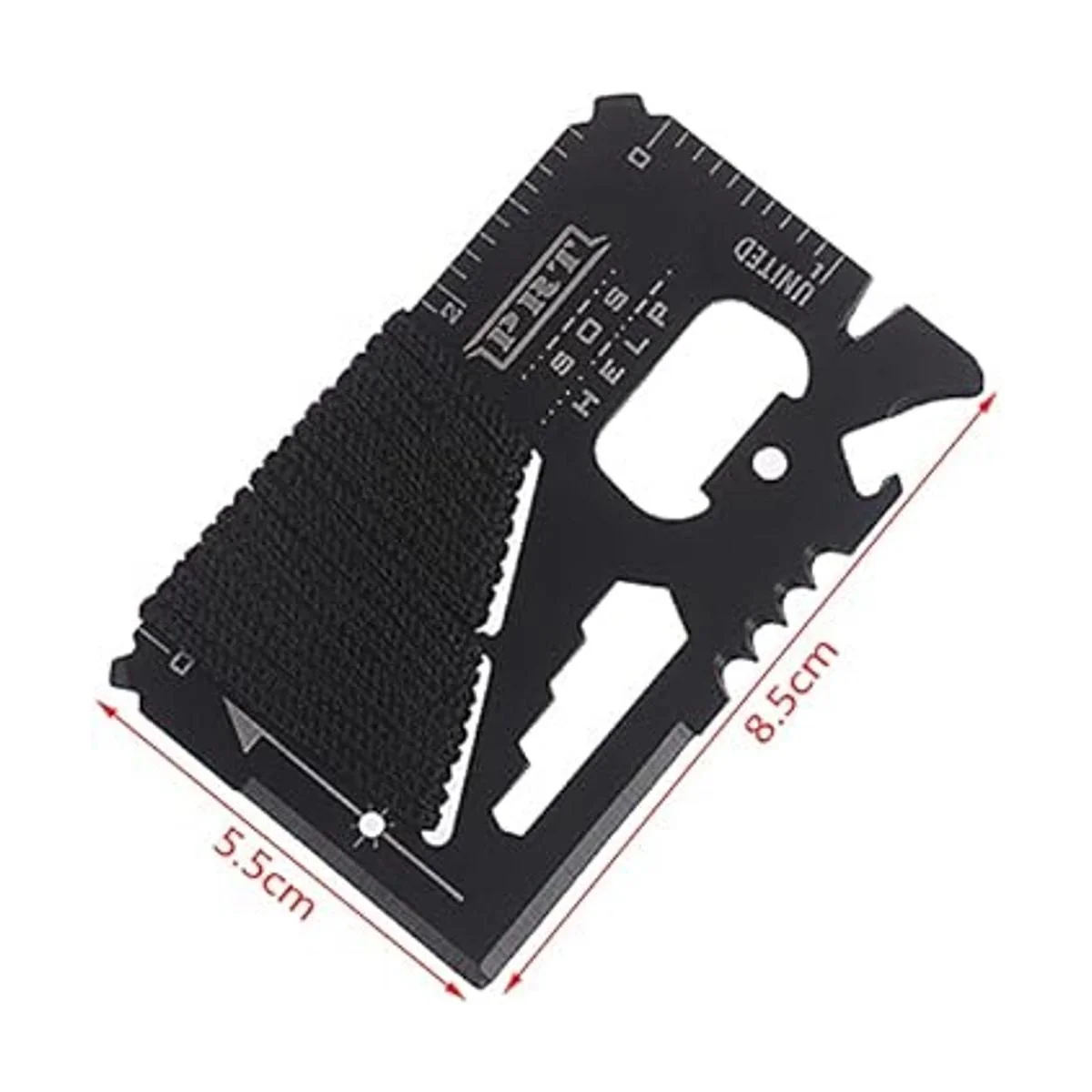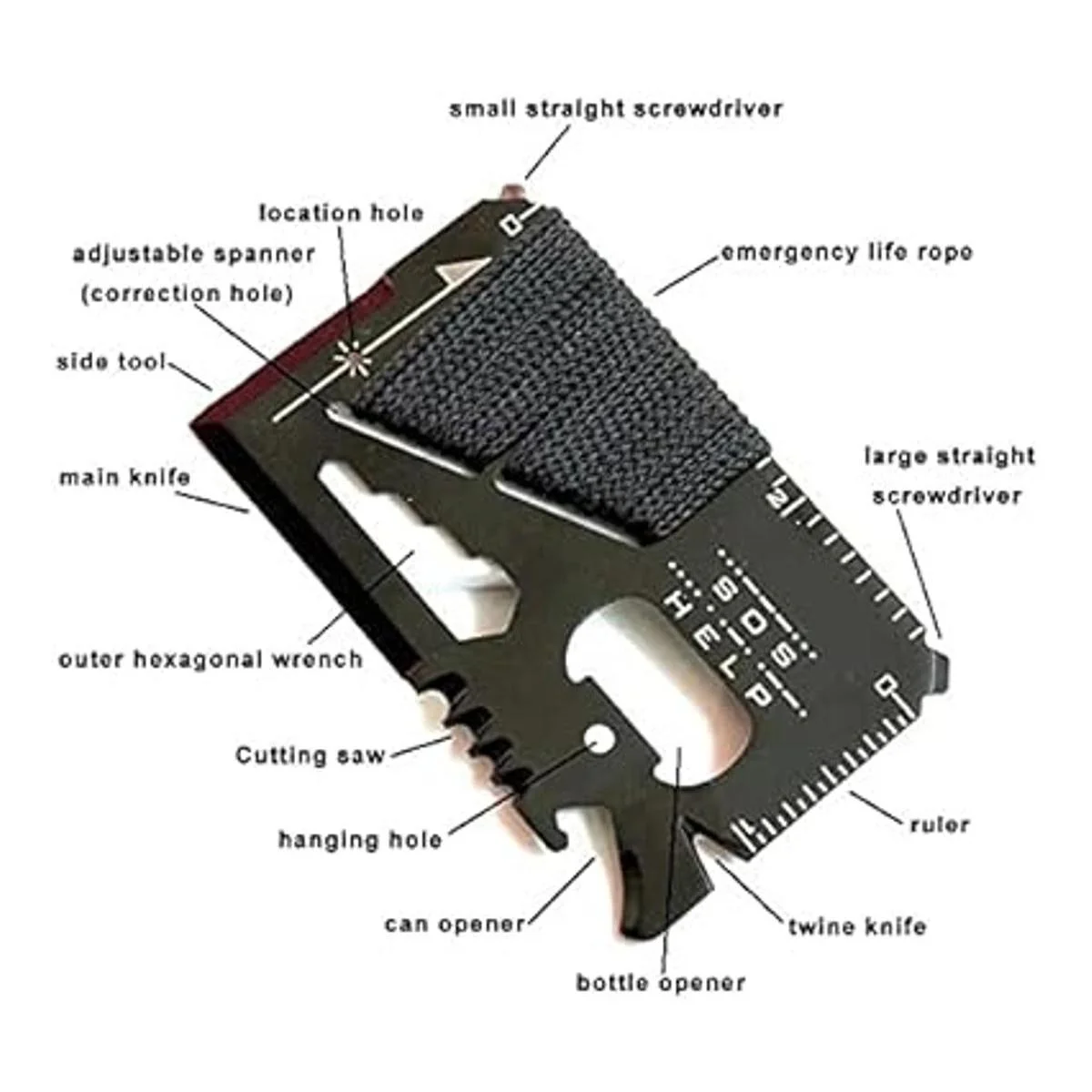 Herramienta de supervivencia de bolsillo multiusos: 14 funciones: destornillador recto, regla, cuchillo de cordel, abrebotellas, abrelatas, agujero de cuerda para colgar, sierra de corte, llave hexagonal exterior, cuchillo principal, cuchillo lateral, tensor ajustable agujero de corrección, agujero capaz, destornillador recto pequeño, cuerda de emergencia, fácil de llevar, seguro y fácil de usar.