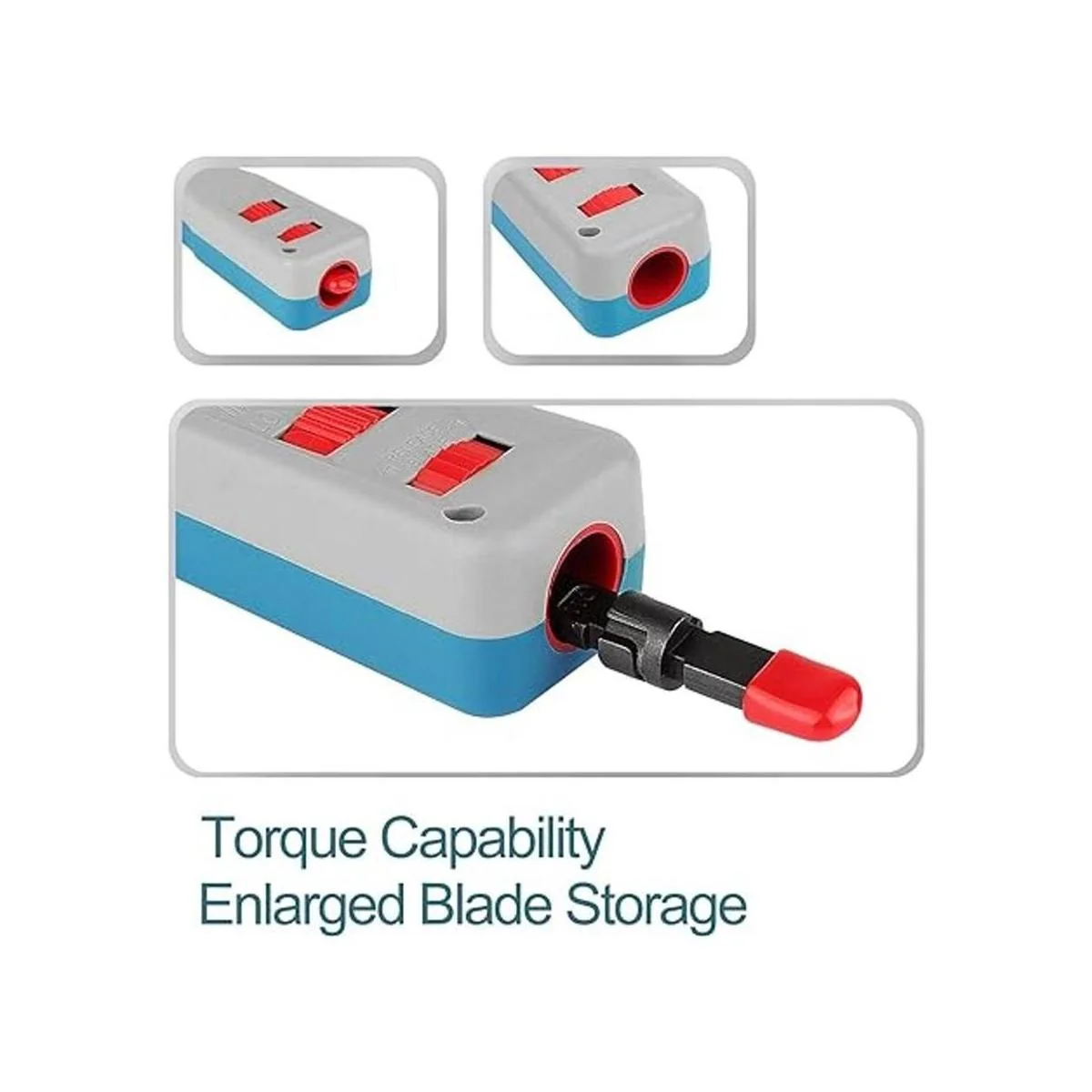 Almacenamiento de cuchillas La herramienta de perforación de red está diseñada con un soporte de giro y bloqueo para el almacenamiento de cuchillas de repuesto para ayudar a prevenir la pérdida de cuchilla.