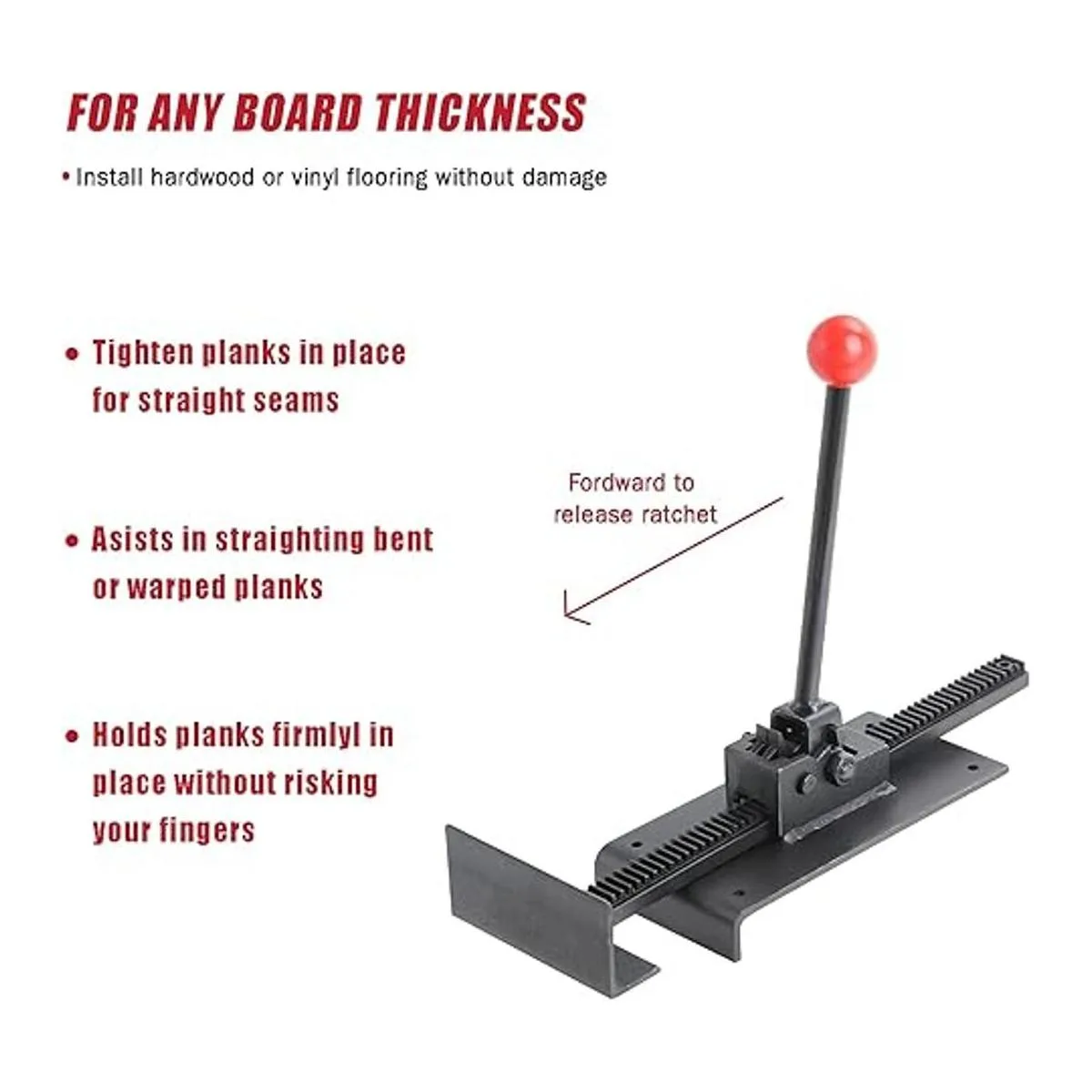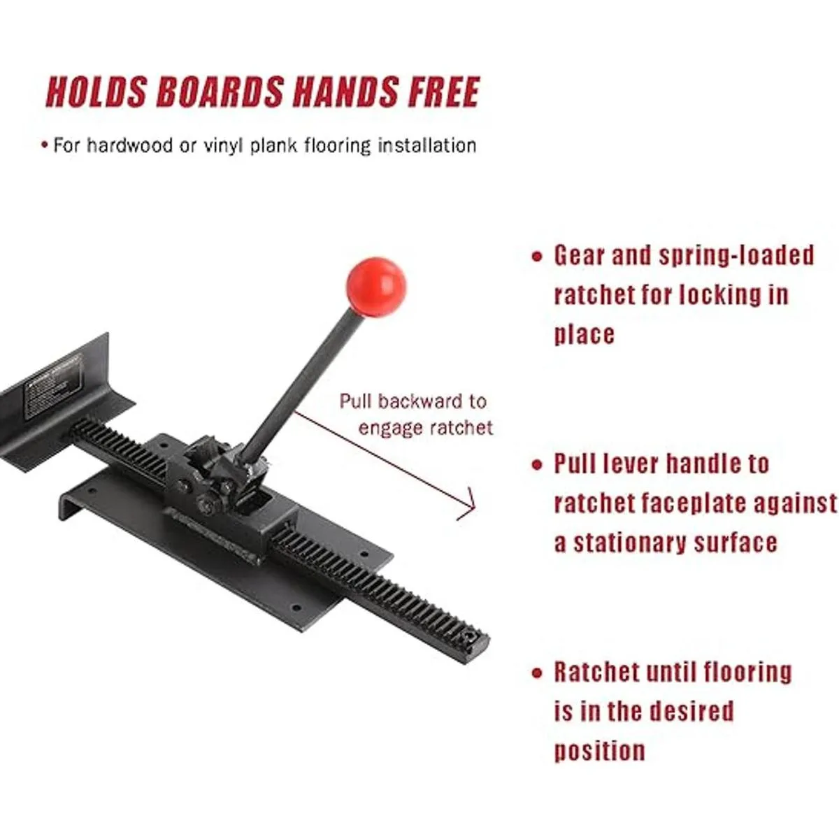 Diseñado para tirar o empujar las tiras de suelo de lengeta y ranura en su lugar y sujetarlas firmemente para clavar con manos libres