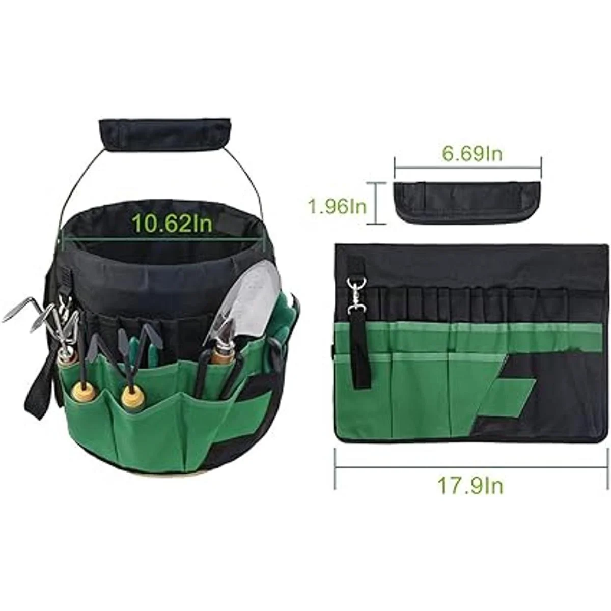 El cubo de jardín está hecho de tela Oxford 600D tela Oxford 210D, que es antidesgarro, resistente al desgaste, impermeable y duradero.