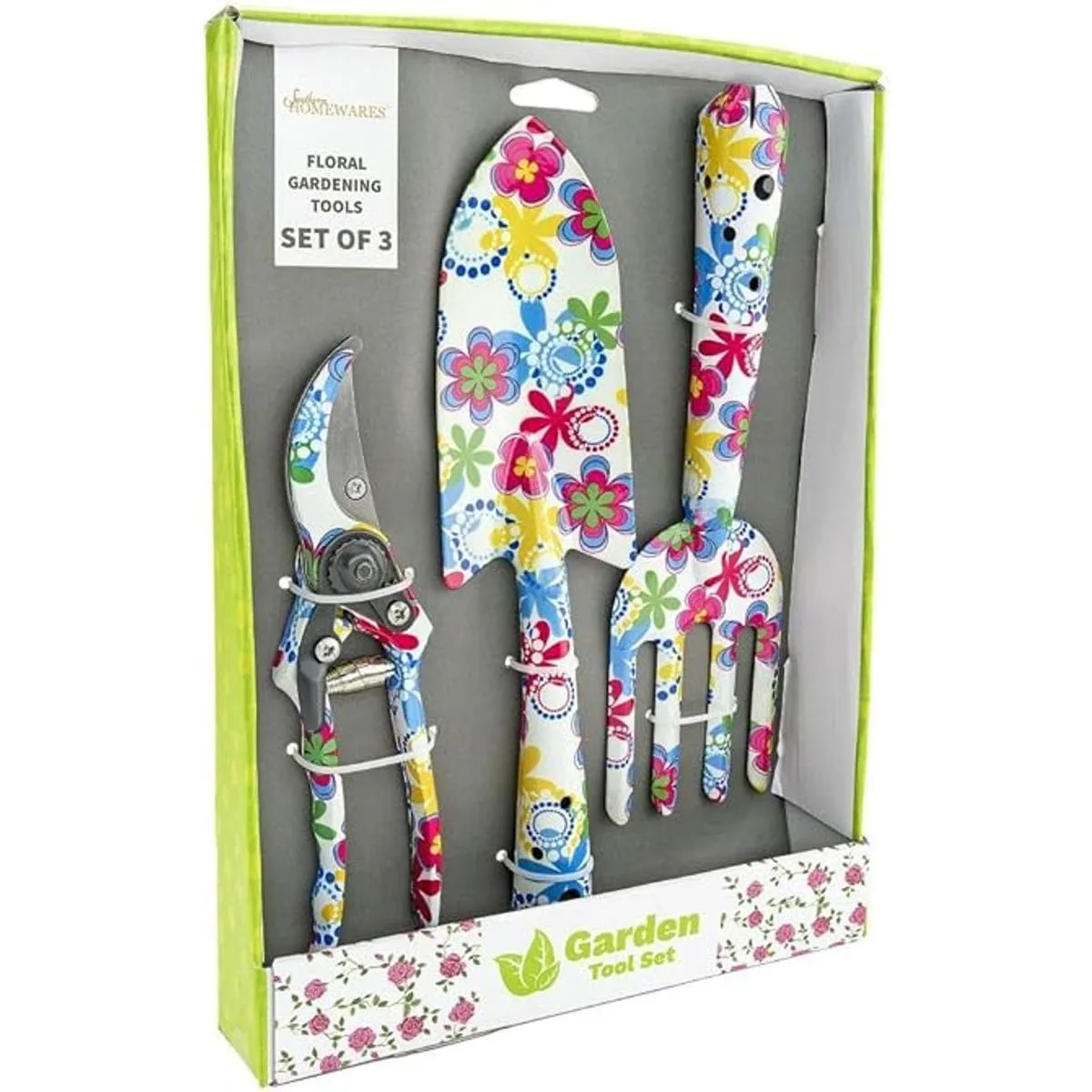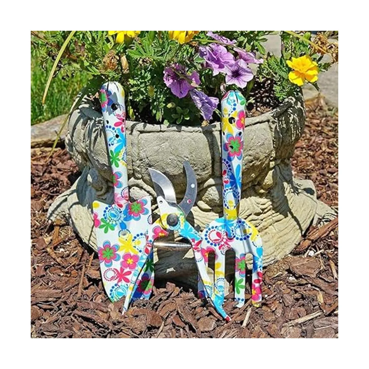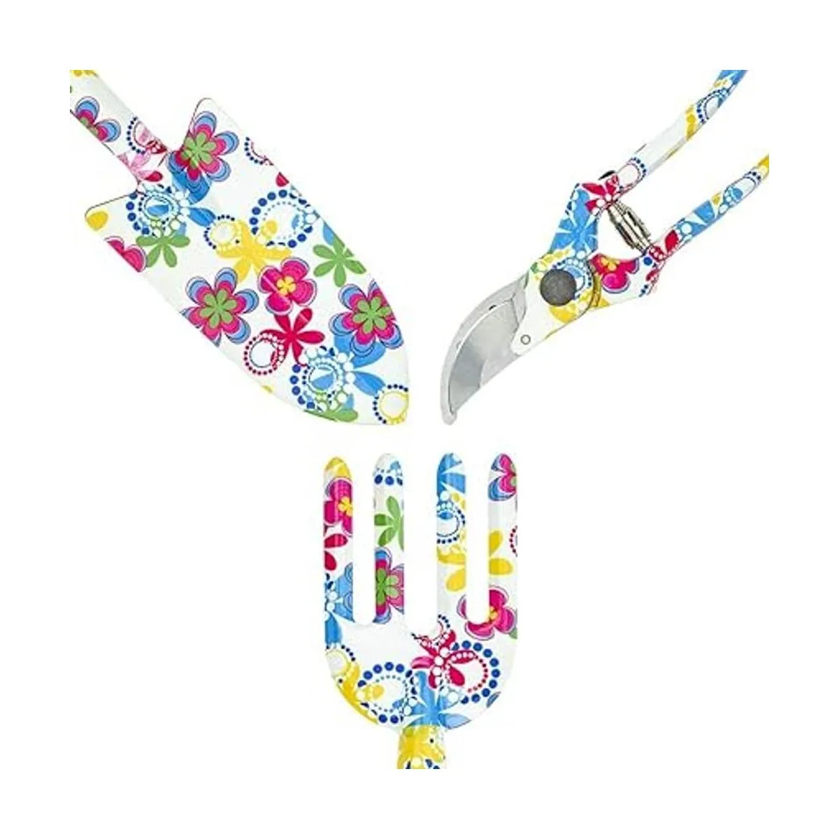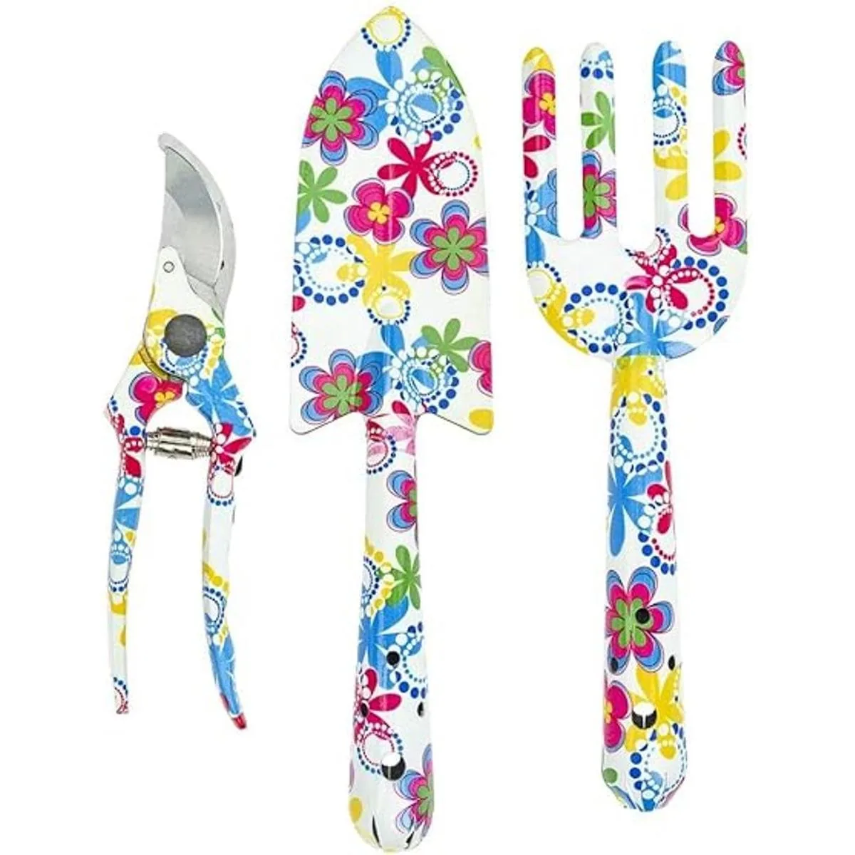 Herramientas de jardinería de diseño floral, juego de 3 Southern Homewares Clippers, pala y tenedor de malas hierbas