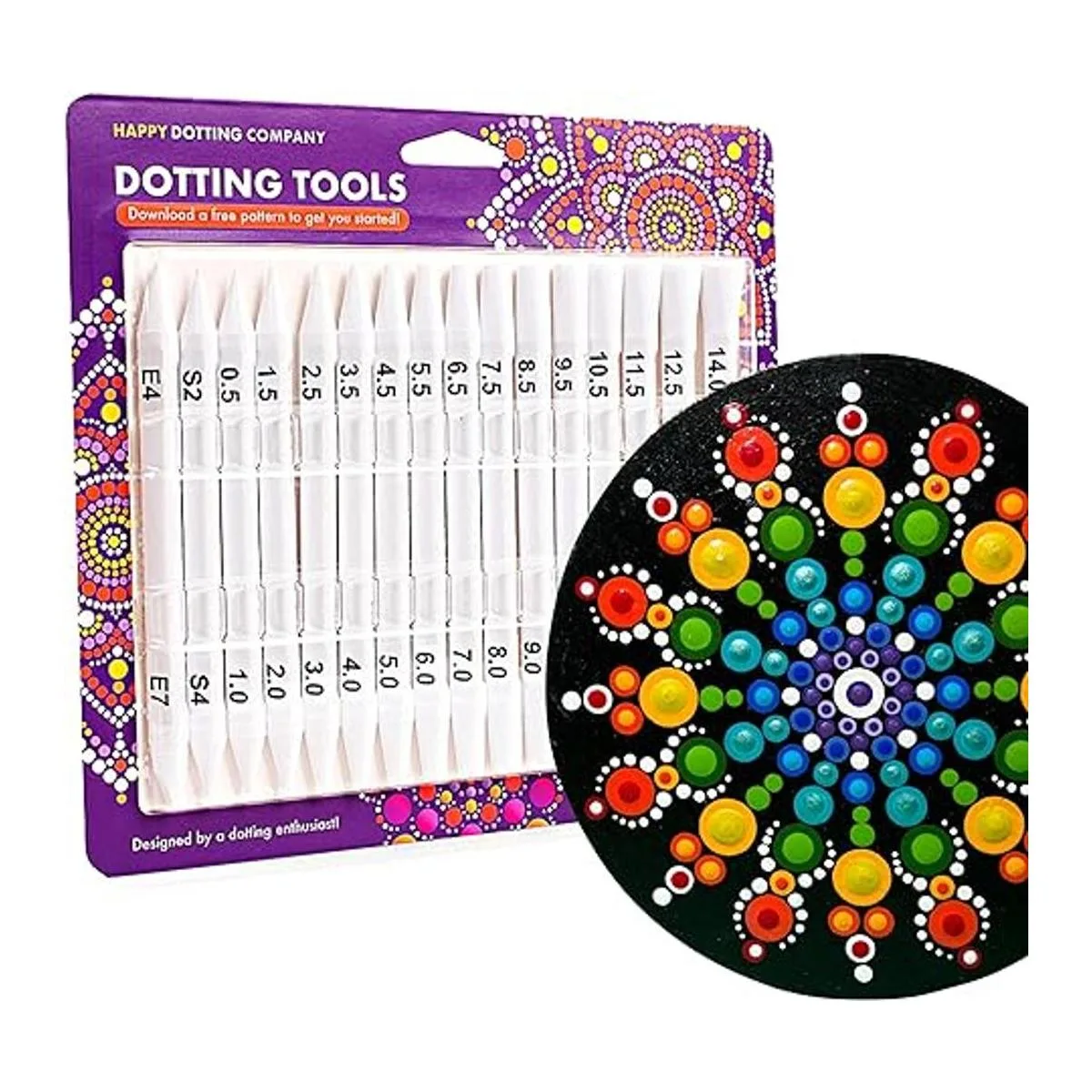 Herramientas de punteado para pintar mandalas Happy Dotting Company Juego de 16 piezas de doble extremo para arte de lunares mandala Incluye lápiz capacitivo Herramienta de elipse única para pintar rocas DIY piedra artesanía y lienzo