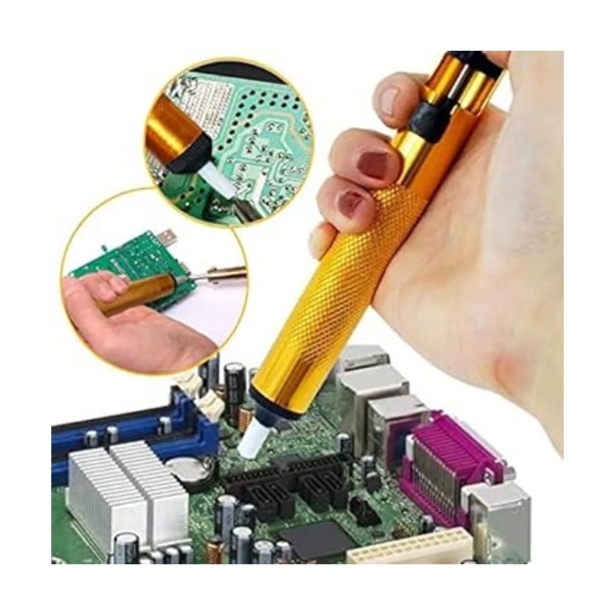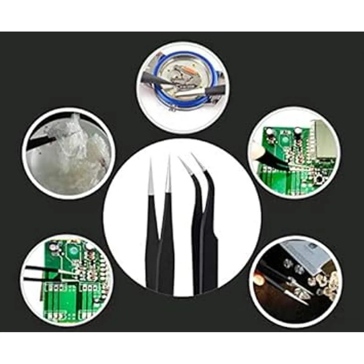 Kit de herramientas: adecuado para reparación electrónica y bricolaje, cualquier placa de circuito con piezas pequeñas, como placas base de teléfono móvil, cables, televisores, VCRs, radios, auriculares, estéreos, motores, juguetes y otros equipos electrónicos. Corrija el error de la placa pequeña en la PCB.
