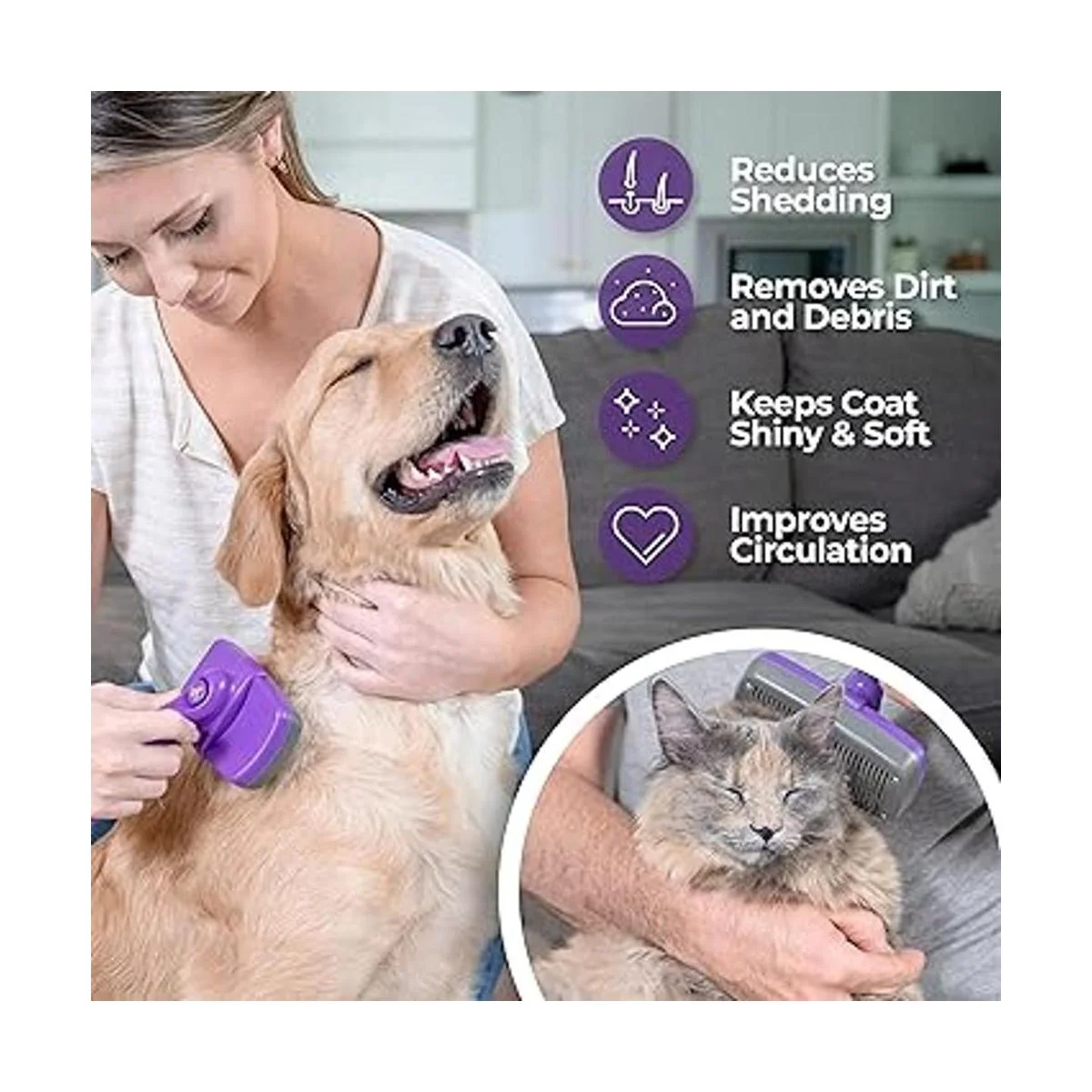 SU MASCOTA NO SLO SE VER BIEN SINO QUE PARECER GENIAL TAMBIN Nuestro peine cortanudos para perros desenreda y masajea para una capa saludable, aumenta la circulación de la sangre y deja la capa de su mascota suave y brillante. Su animal doméstico amará ser peinado.