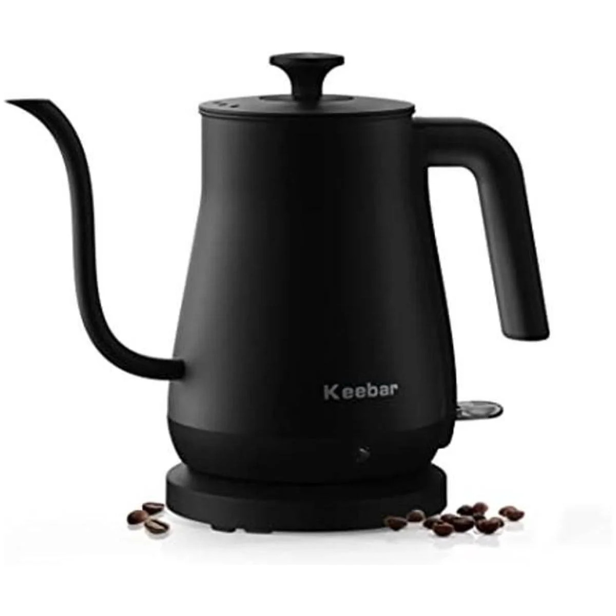 Hervidor eléctrico, 100% acero inoxidable sin BPA, hervidor de cuello de cisne, tetera eléctrica con protección de apagado automático, calentamiento rápido de 1000 W, Keebar, negro, XHW081B