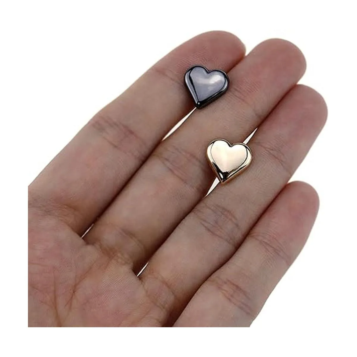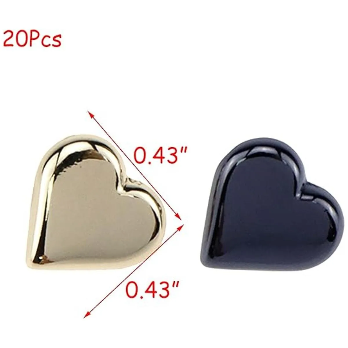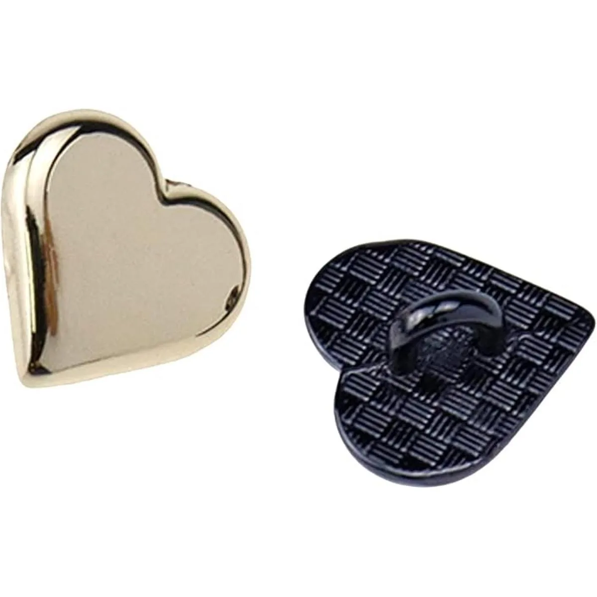 HEVSTIL Juego de 20 botones de vástago de metal en forma de corazón, botones de corazón con vástago de metal, un solo agujero, decorativo para bricolaje, costura de adorno, vestido de mujer, trajes de costura dorado, negro