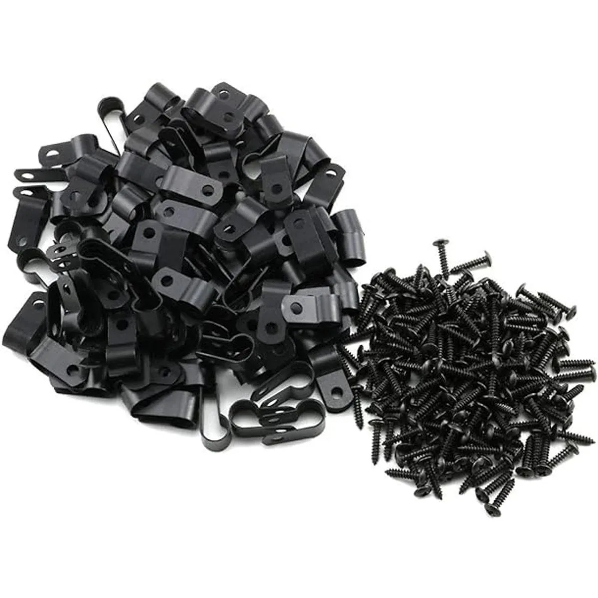 Heyous Abrazadera de cable tipo R de nailon con tornillo de montaje