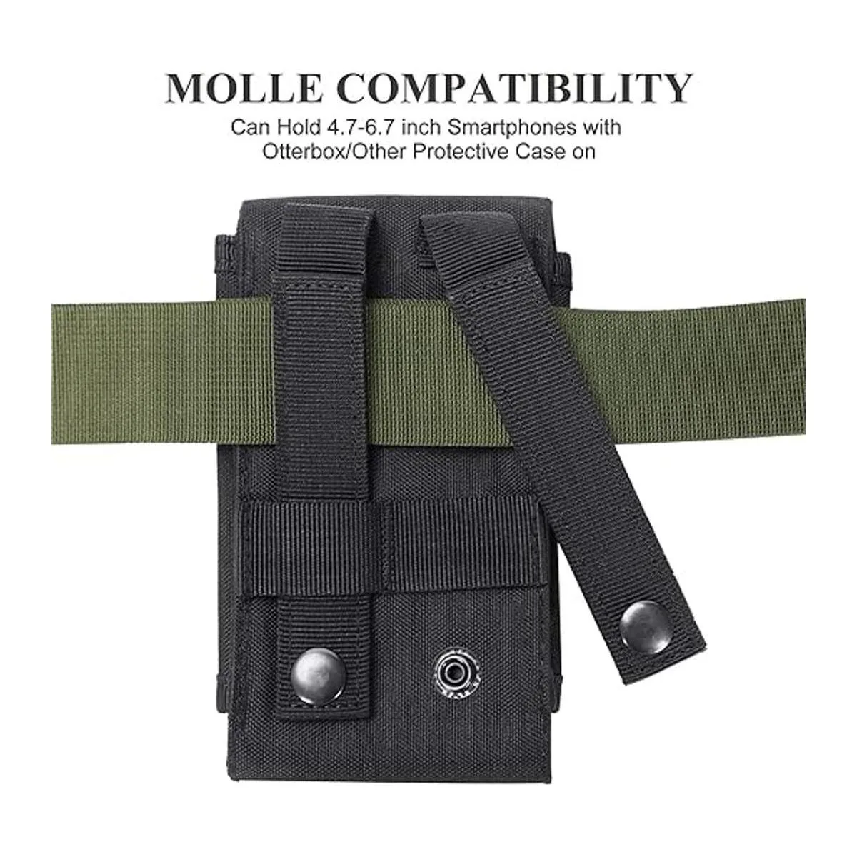 Tamaño: 6.3 x 3.3 x 0.8 pulgadas altura ajustable de 6.3 a 7.0 pulgadas, con cierre de cinta mágica de altura ajustable adecuado para diferentes tamaños de teléfonos móviles, suficiente espacio para adaptarse al teléfono celular de 4.7 a 6.7 pulgadas con funda protectora Otterbox/Survivor puesto.