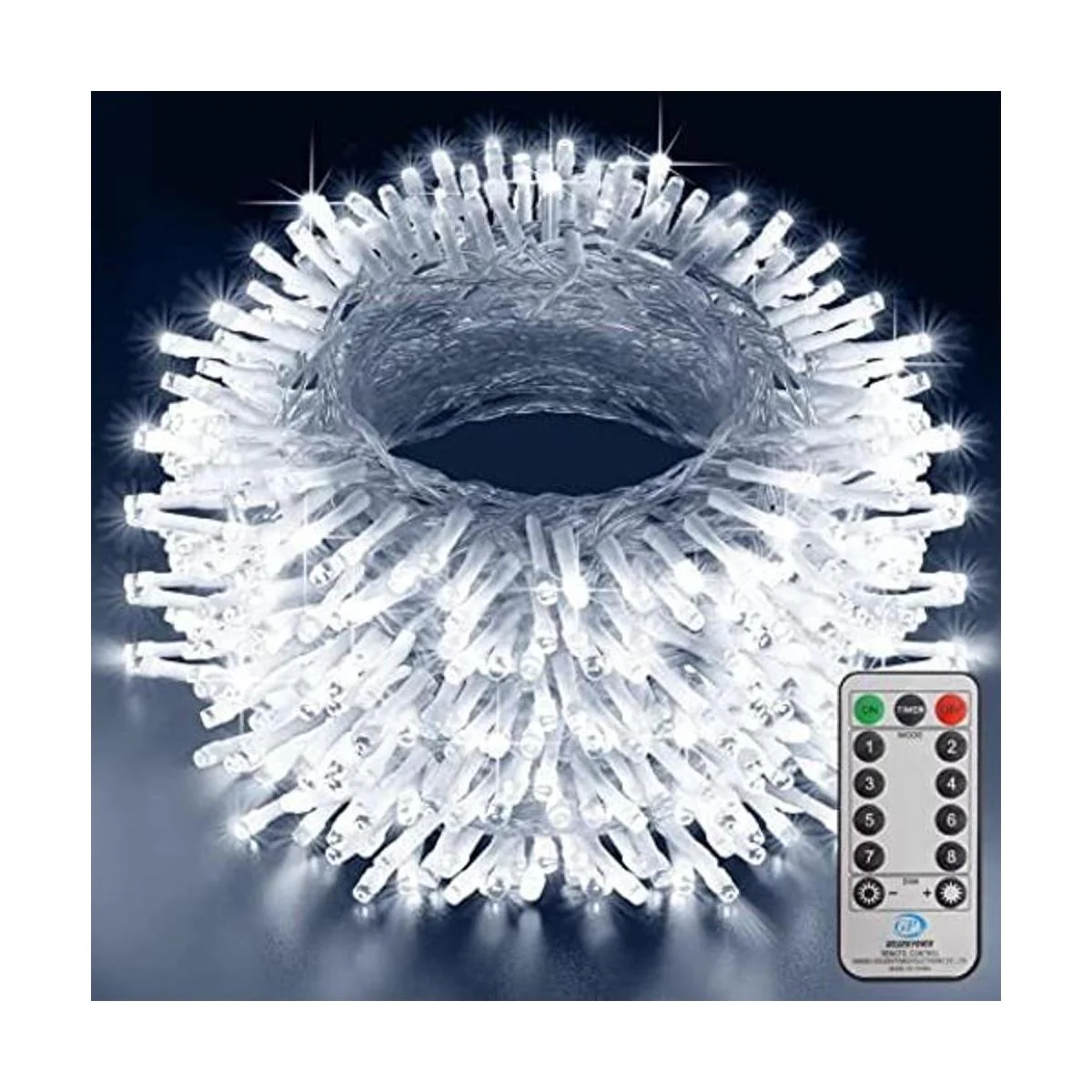 Hezbjiti Guirnalda de luces de Navidad para exteriores, 1000 LED de 394 pies, 8 modos de iluminación, luces de hadas de Navidad con control remoto y temporizador para el hogar, cumpleaños, boda, fiesta, habitación y decoración de árbol, color blanco frío