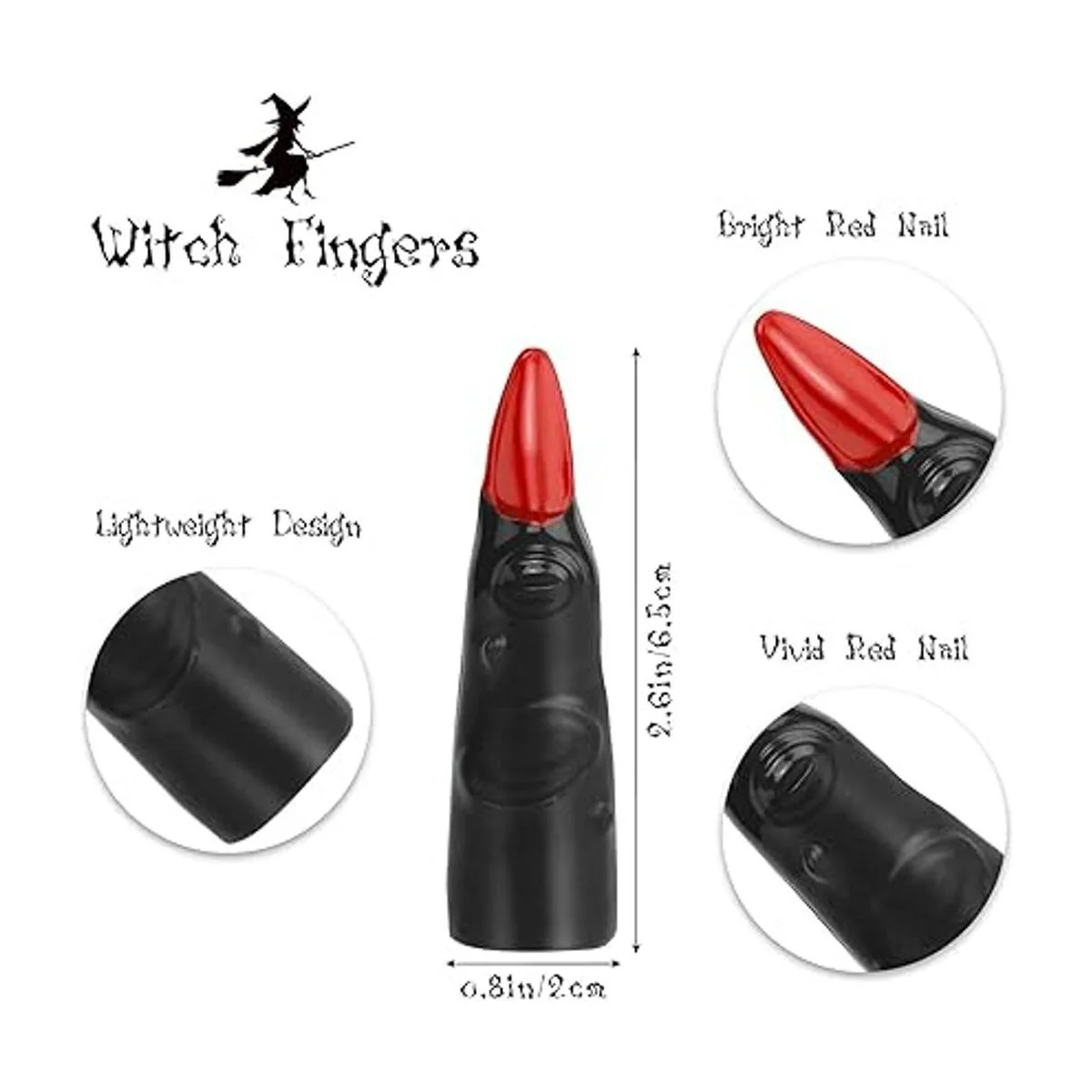 Juguete divertido para los dedos: los dedos de bruja son muy realistas y las extrañas puntas de los dedos rojos añaden un ambiente aterrador. Pueden hacer que tu cosplay sea más vívido e interesante y ofrecerte una experiencia de celebración de Halloween más feliz.