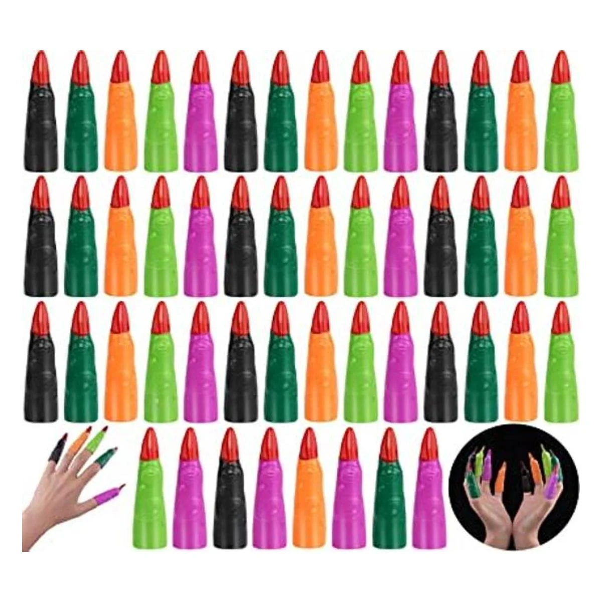 HFATMOS, Coloridos dedos de bruja para leer, 5 colores de plástico falsos, dedos de bruja marciana para niños, puntero de lectura de dedos, lectores jóvenes, accesorios de disfraz de fiesta de Halloween, 50 piezas