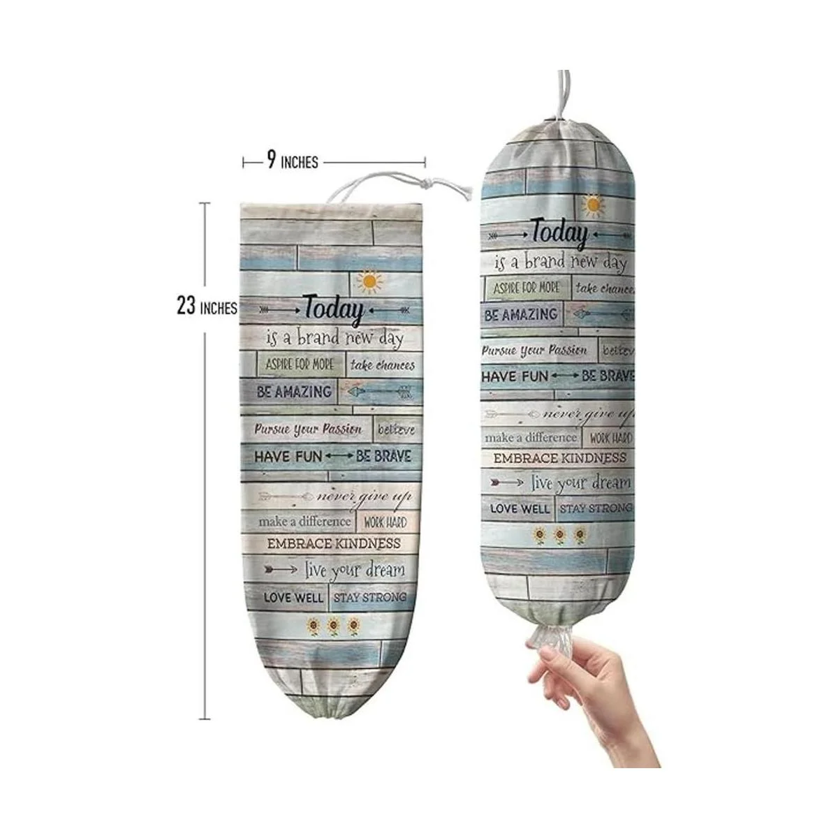 Hglian Dispensador de bolsas de comestibles inspiracionales hoy es un nuevo día con citas de plástico organizador contenedor para bolsas de basura verde azulado Motivacional decoración de cocina arte lienzo 23×9