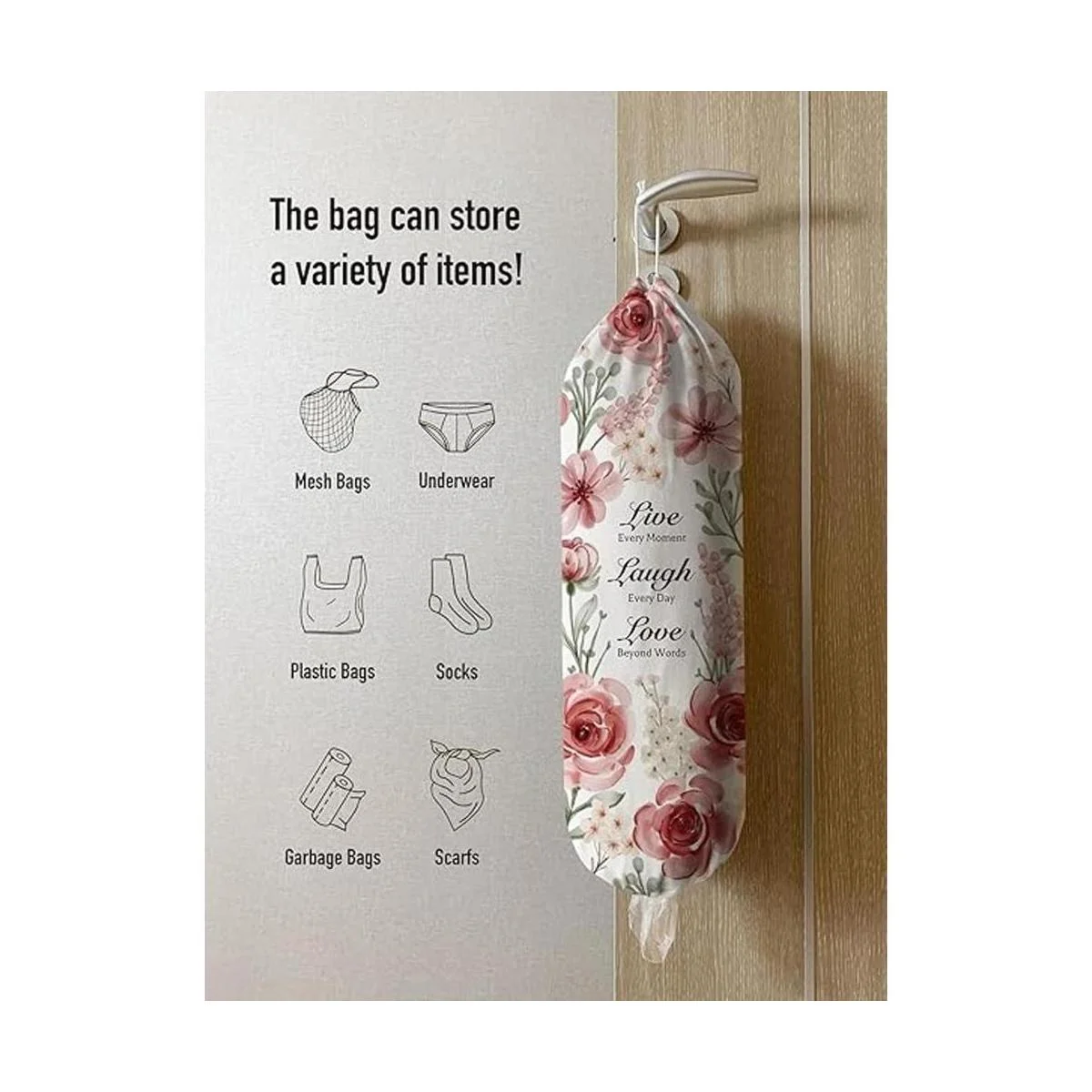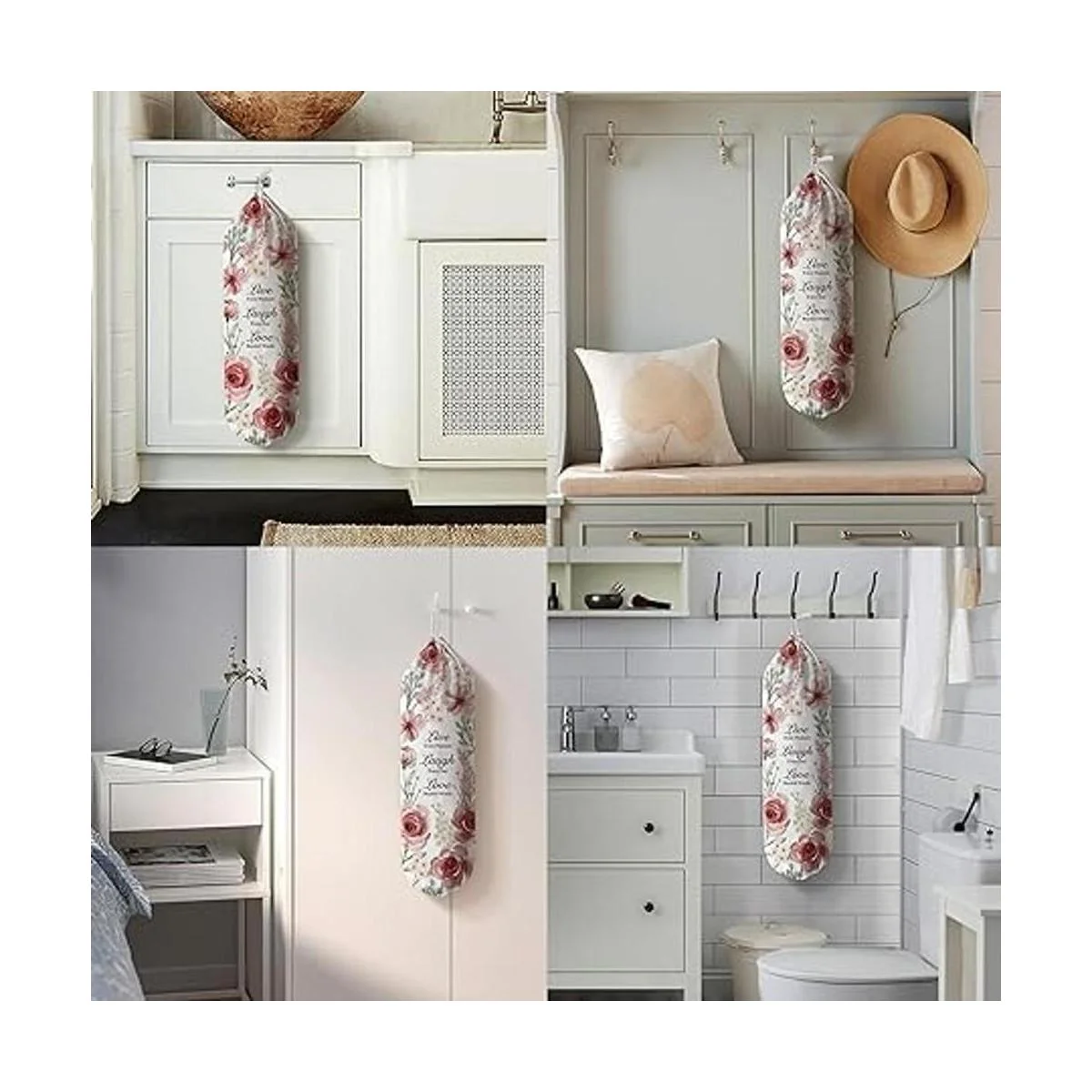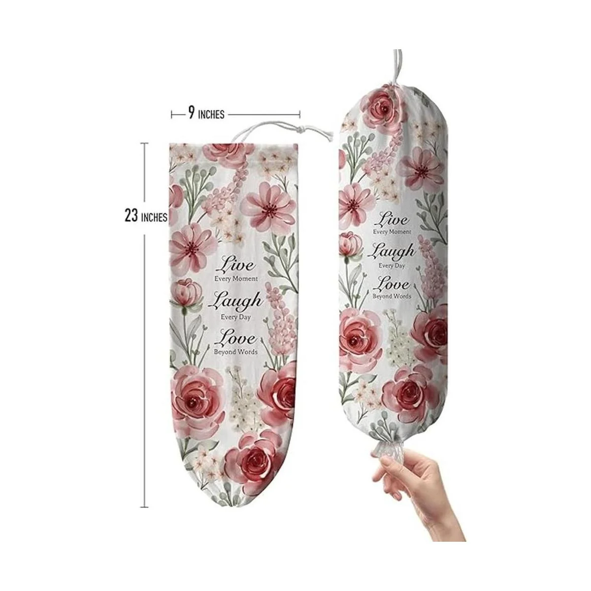 Hglian Live Love Laugh Dispensador de bolsas de comestibles, organizador de bolsas de plástico para la compra, diseño de flores, color rosa