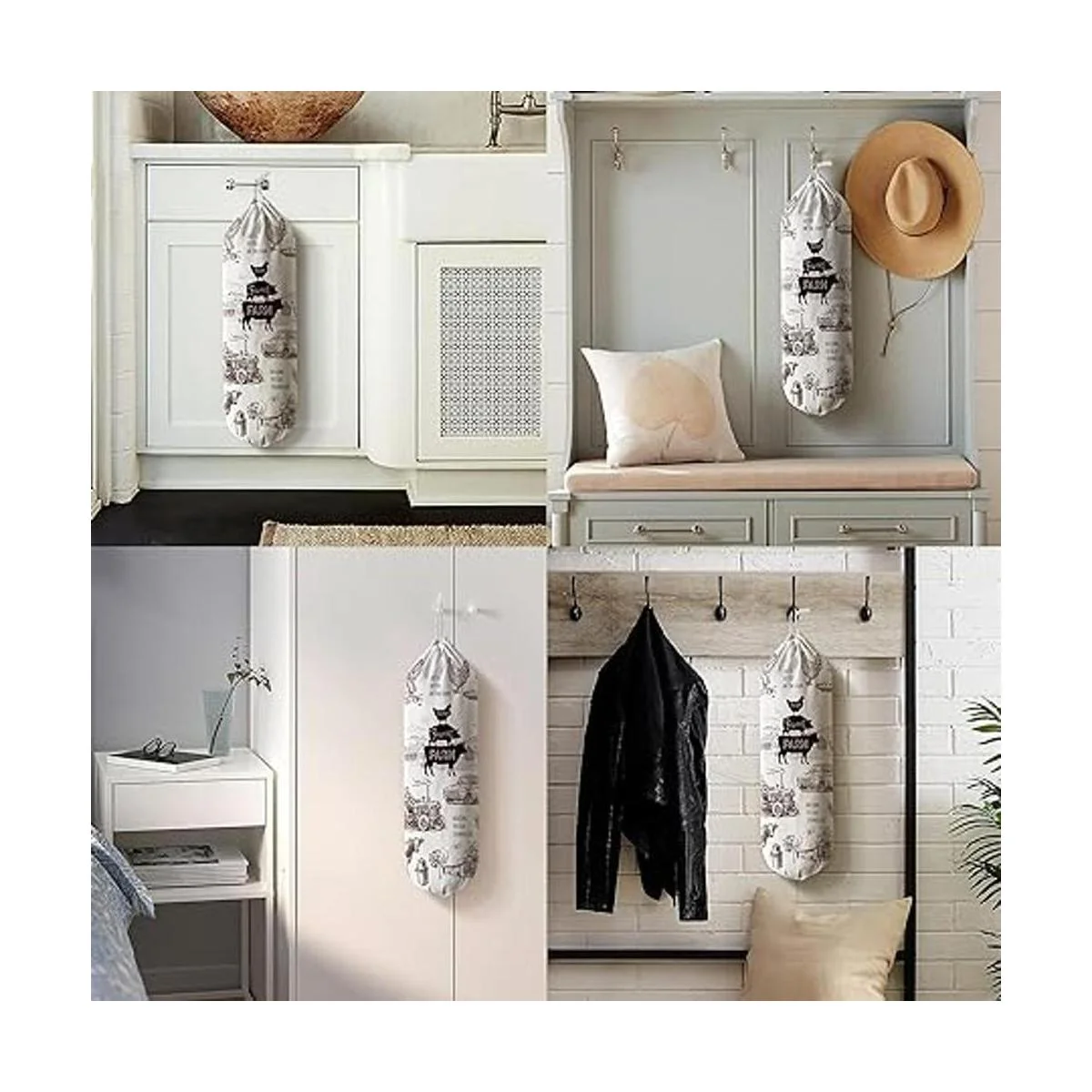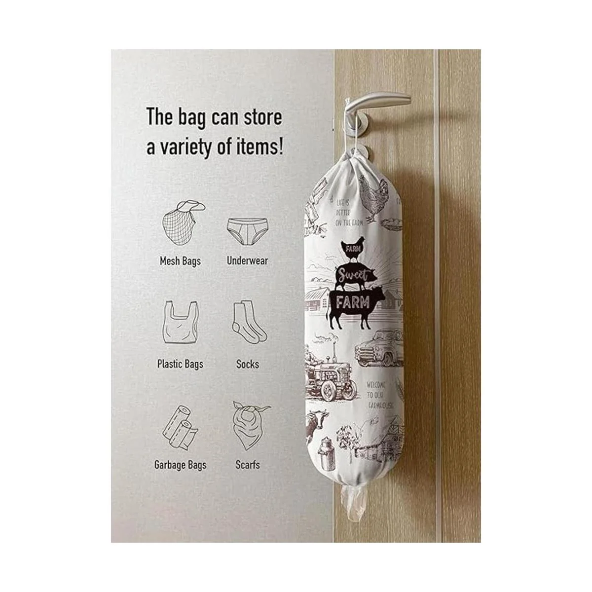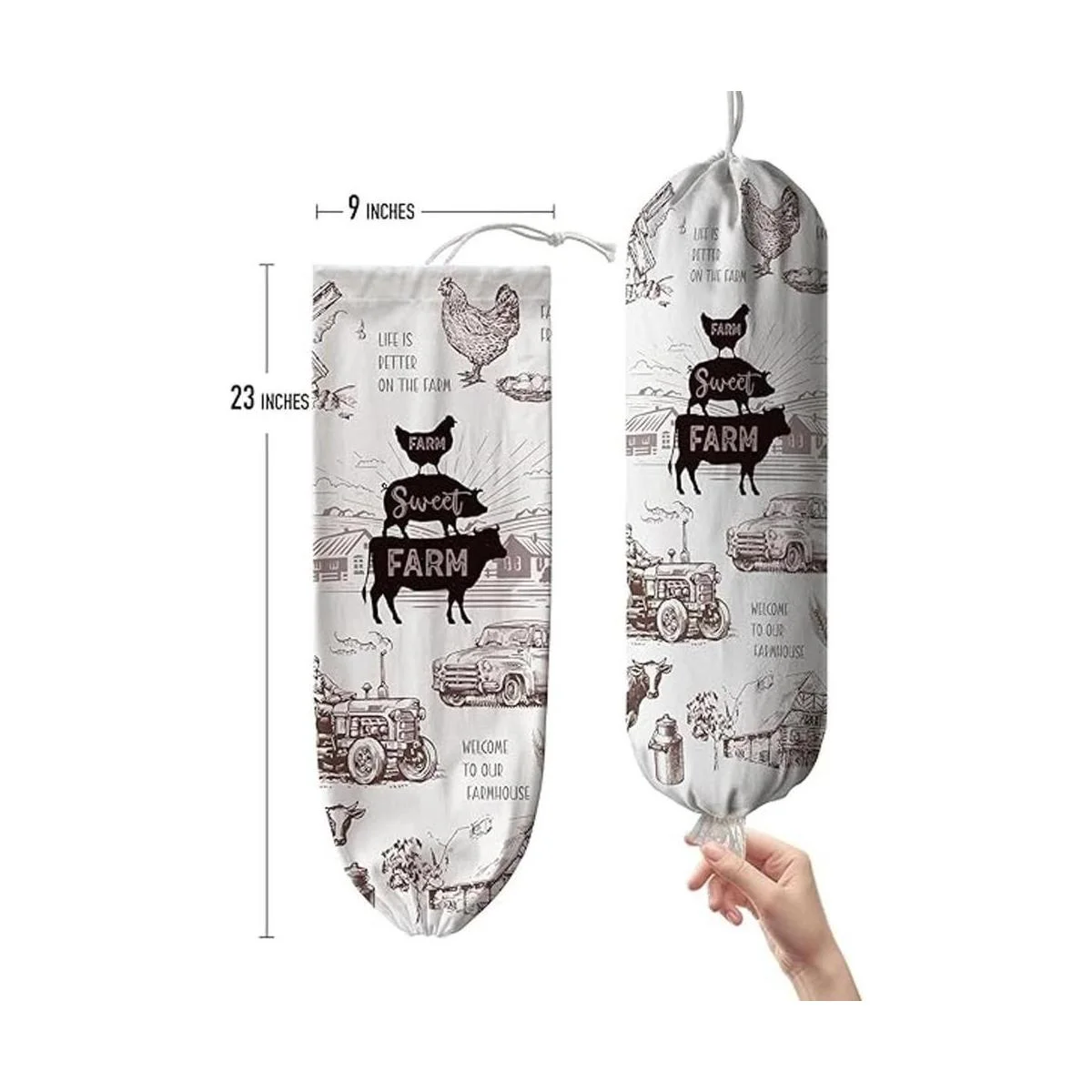 Hglian Soporte y dispensador de bolsas de plástico para comestibles, organizador de bolsas de plástico para pared, soporte de bolsas de basura para compras, almacenamiento para cocina, decoración del hogar de granja, regalos para mujeres, mamá, abuela