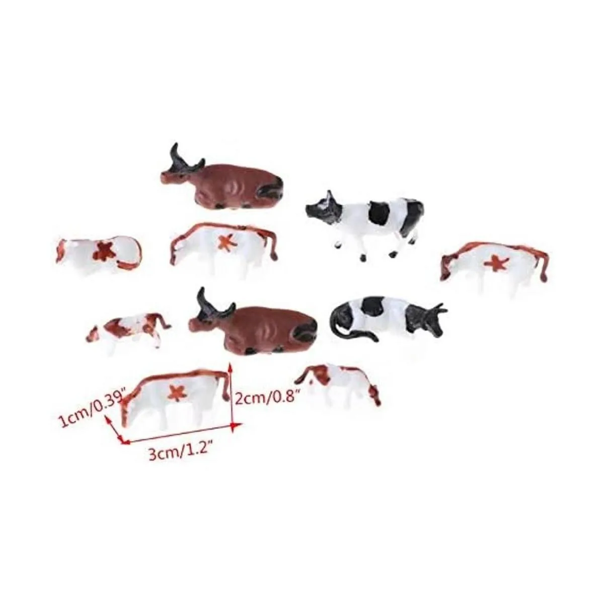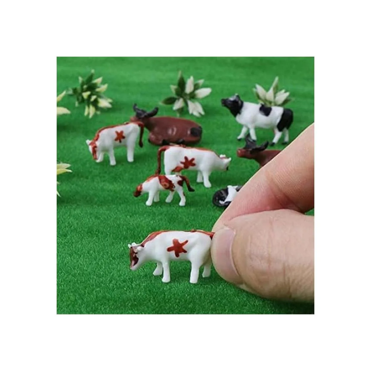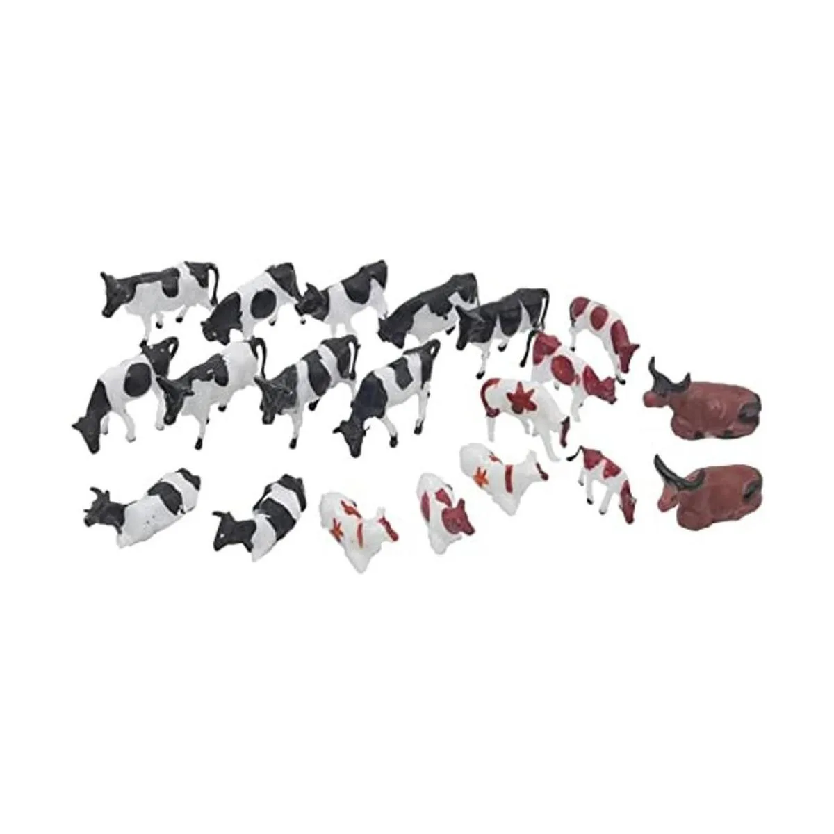 Hiawbon Mini figuras coloridas de ganado simulado a escala HO 187 figuras de vaca de plástico realistas, 20 piezas