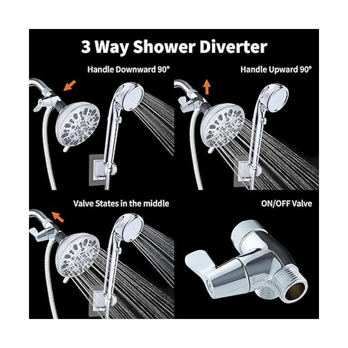 Desviador de ducha: este desviador de ducha está fabricado con latón macizo, y tiene una superficie lisa y cromado, que puede soportar cambios de presión de agua y óxido diario. La función desviadora de ducha de 3 vías cambia el agua suavemente del pulverizador de mano a la ducha fija con válvula de encendido/apagado.