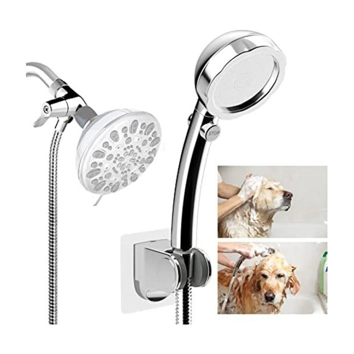 3 ajustes de pulverizador: diseñado con un botón fácil de poner y quitar, el cabezal del pulverizador para perro proporciona un fuerte flujo para hacer que enjuagar la suciedad sea fácilmente del pelo grueso de la mascota. Este cabezal de ducha para perro tiene 3 modos para elegir completo, pulsado y pulverizador. El fregadero de cabezal de ducha tiene un excelente control de flujo de agua, función de ahorro de agua, lo que hace que todo el enjuague, llenado y limpieza sea mucho más fácil y conveniente.