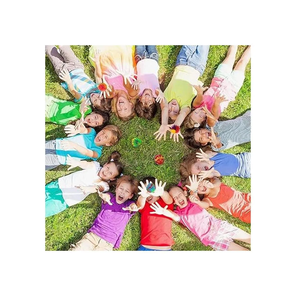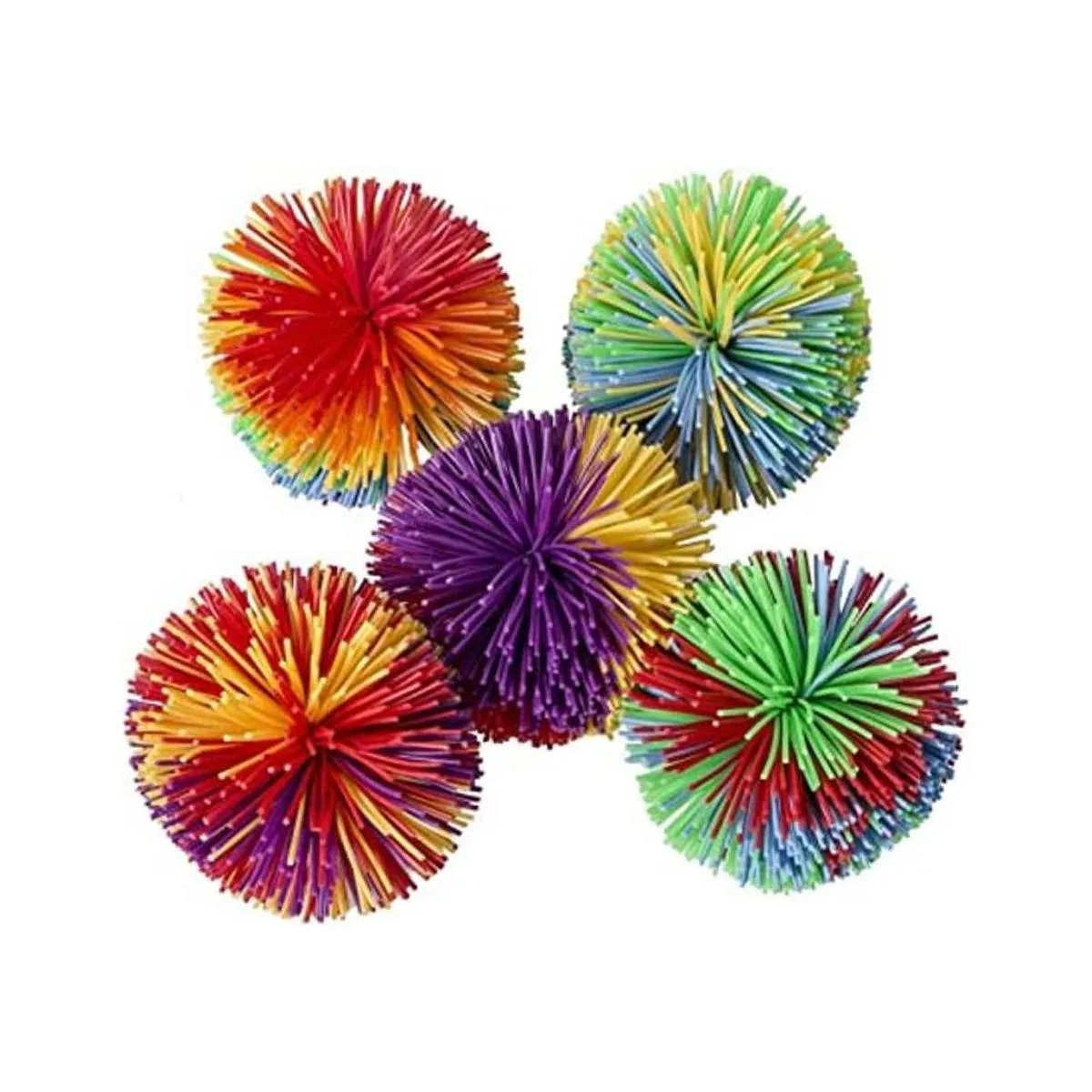 Hibery Paquete de 5 bolas de cuerda de mono, grandes juguetes sensoriales para la ansiedad, bolas de estrés con pompones de arco iris, juegos divertidos recuerdos de fiesta