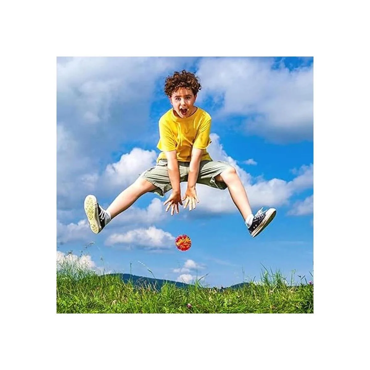 Diseño: colorida bola de rebote de juguete sensorial; tanto el tamaño como el color pueden mejorar la atención de tus hijos. Siente la tranquilidad de saber que la silicona es segura, por lo que tus hijos pueden usar este juguete y relajarse. El tamaño los hace perfectos para fiestas.