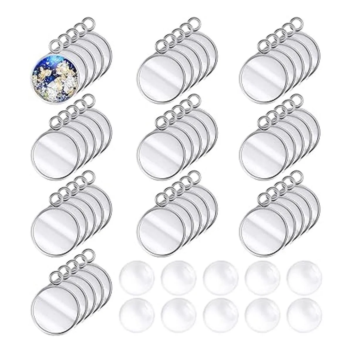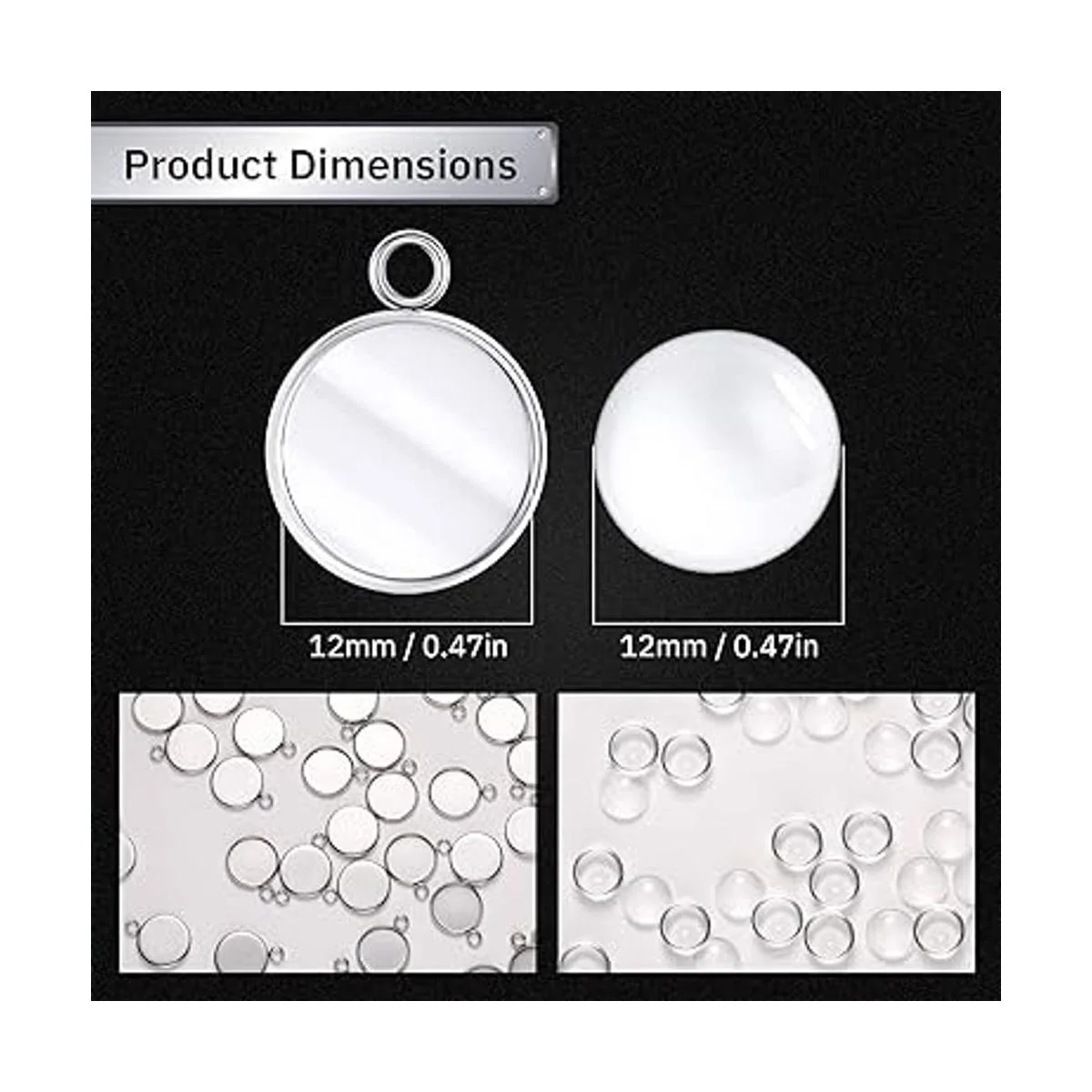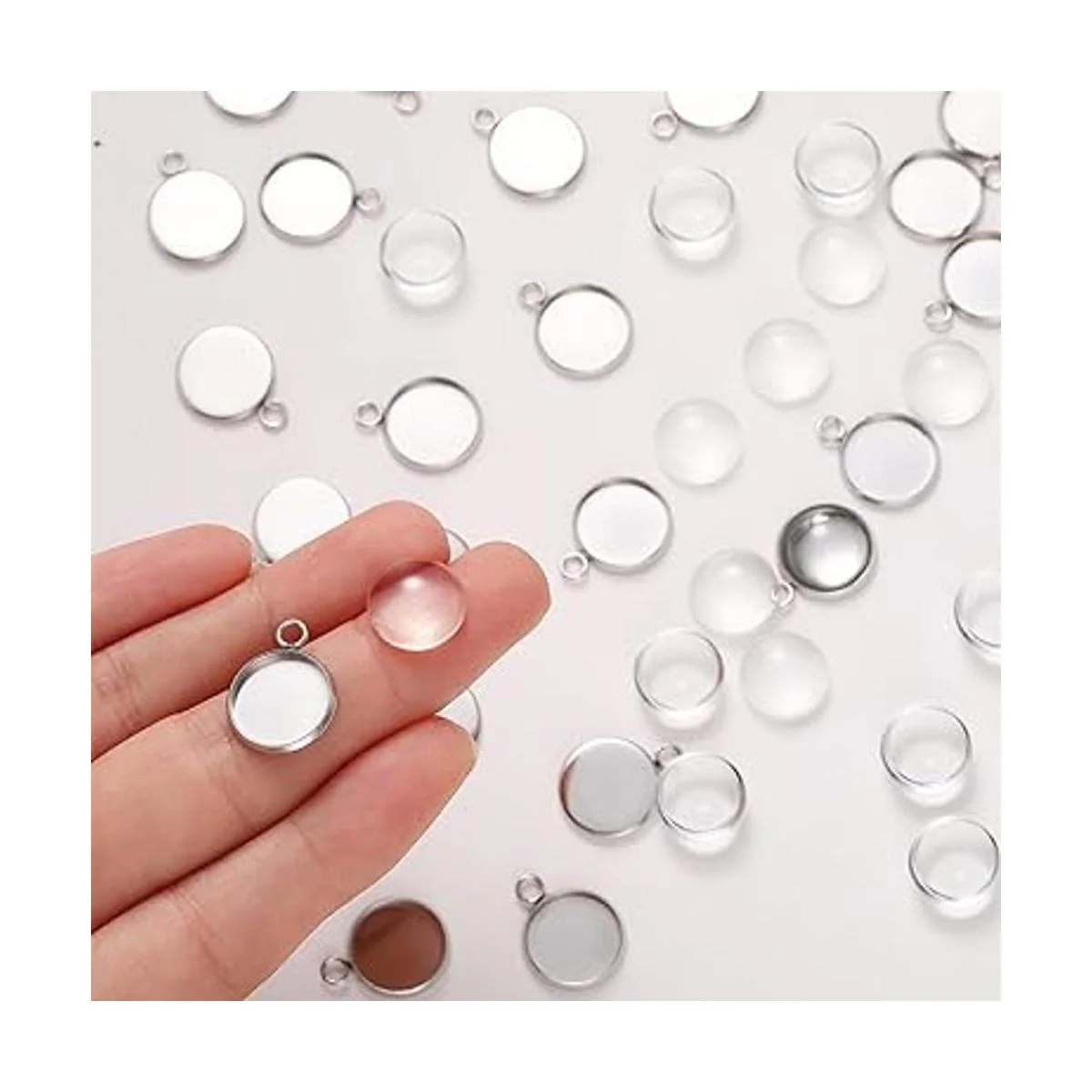 Hicarer Juego de 200 piezas de bisel redondo de acero inoxidable de 0.472 in, incluye 100 bandejas colgantes, 100 bandejas de cabujón de cristal, colgantes en blanco para hacer joyas, hallazgos de bricolaje, Alumide, 1