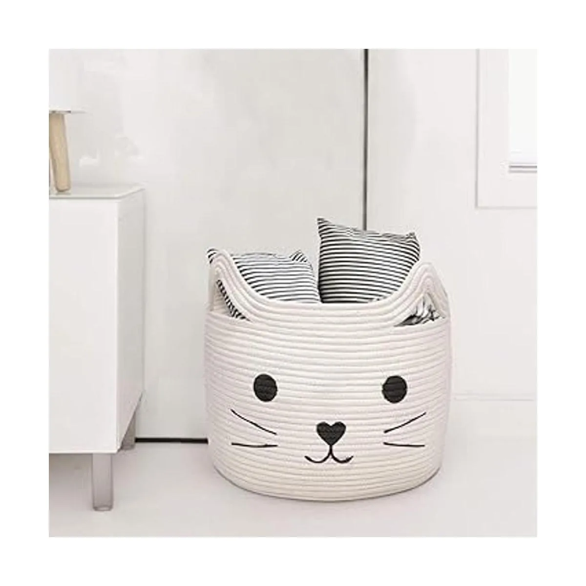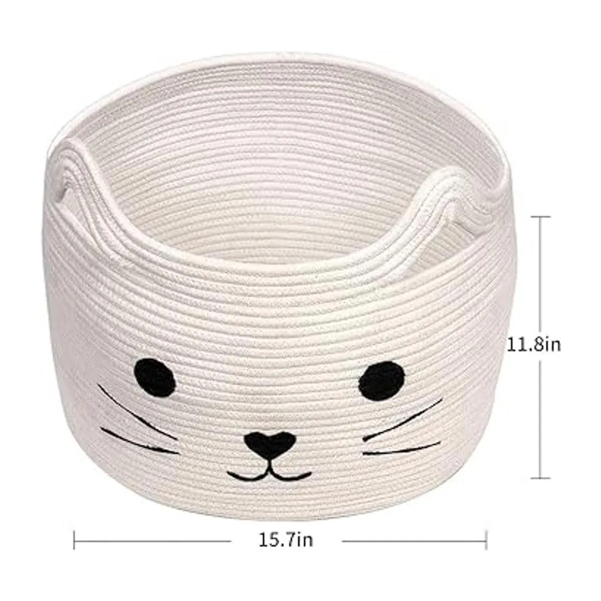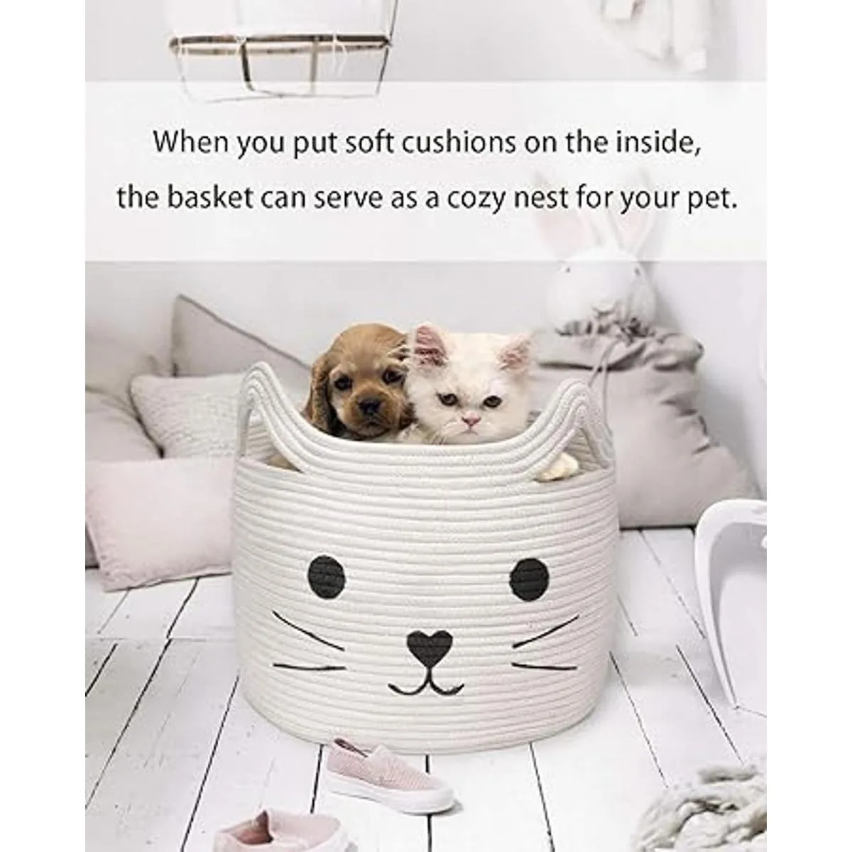 HiChen Canasta de almacenamiento tejida con cuerda de algodón, tamaño grande, organizador para cuarto de servicio, juguetes, mantas, ropa, toallas, regalos, para mascotas, gatos y perros, 15.7 pulgadas de largo x 11.8 pulgadas de alto