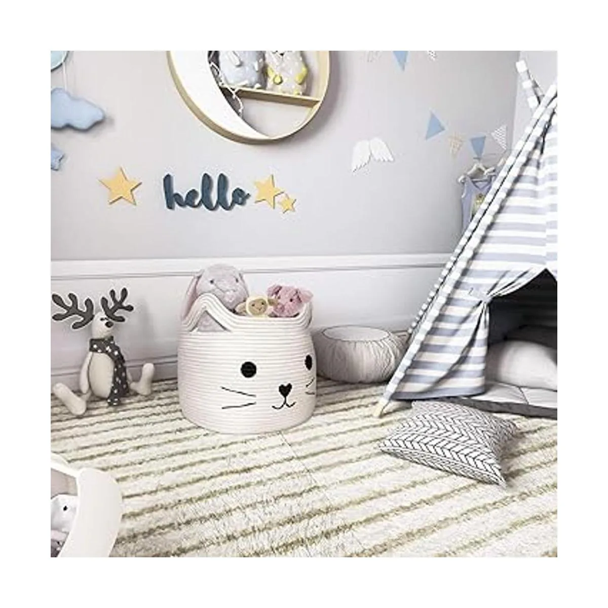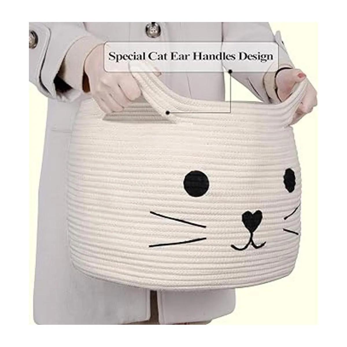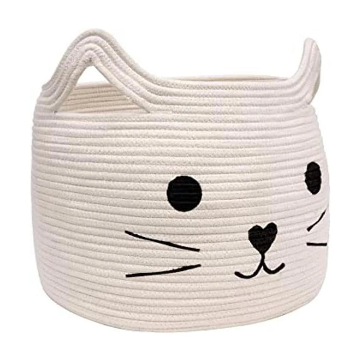 HiChen Canasta de almacenamiento tejida con cuerda de algodón, tamaño grande, organizador para cuarto de servicio, juguetes, mantas, ropa, toallas, regalos, para mascotas, gatos y perros, 15.7 pulgadas de largo x 11.8 pulgadas de alto