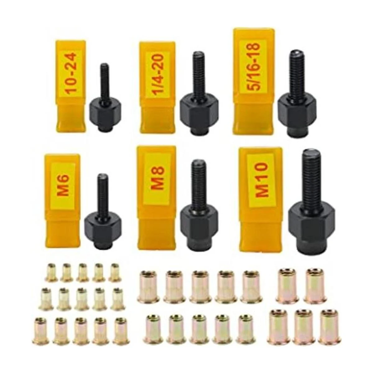 HIFESON Herramienta de tuerca remachadora de mano, práctica herramienta de remache, métrica y SAE con 30 tuercas remachables de acero, kit de tuerca remachada con caja resistente, diseñada para espacios reducidos acero