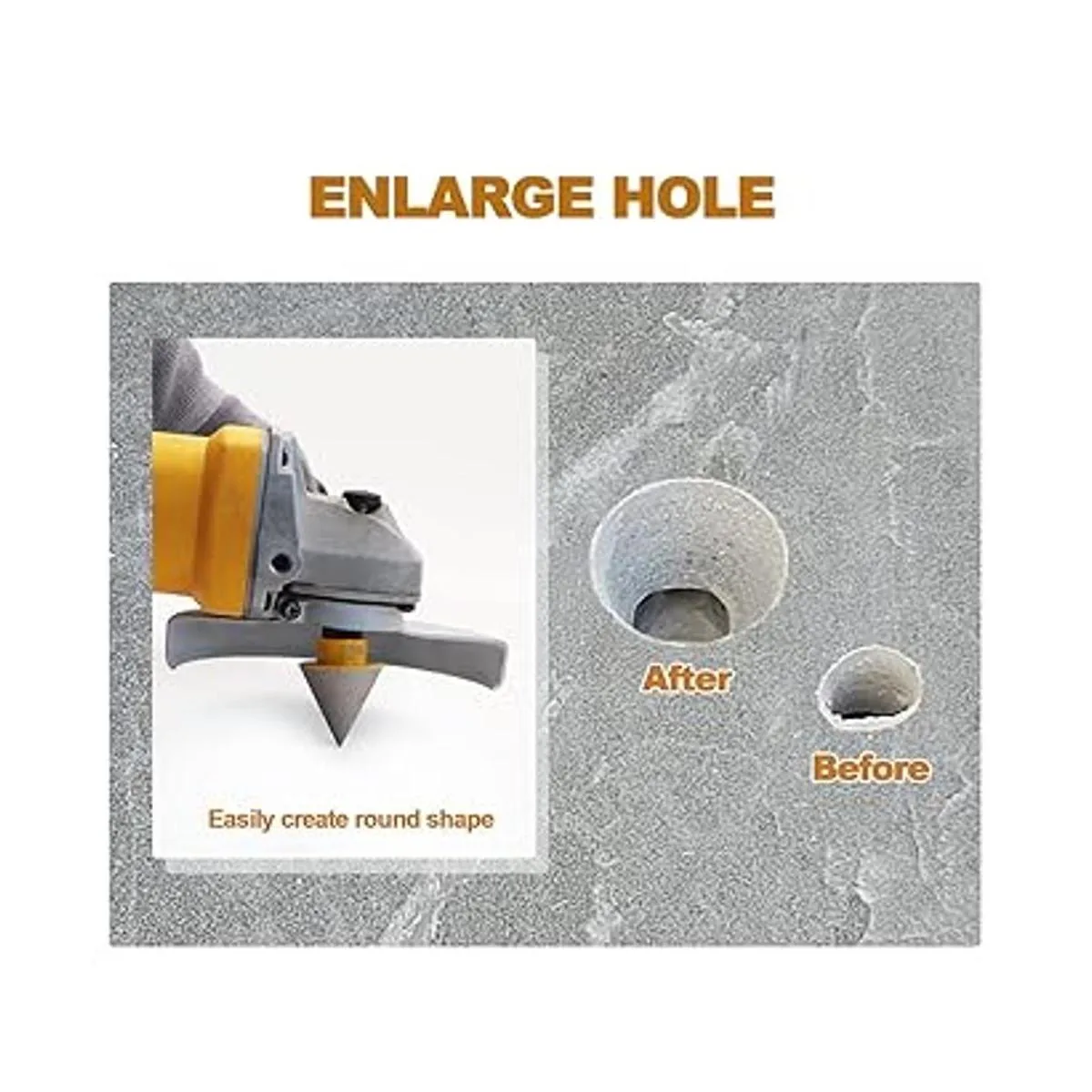 Diseñado para ampliar/recortar/moldear/agujeros redondos redondos, biselar agujeros existentes. También crea fácilmente una hendidura de forma redonda para acomodar tuberías o líneas de alambre eléctrico