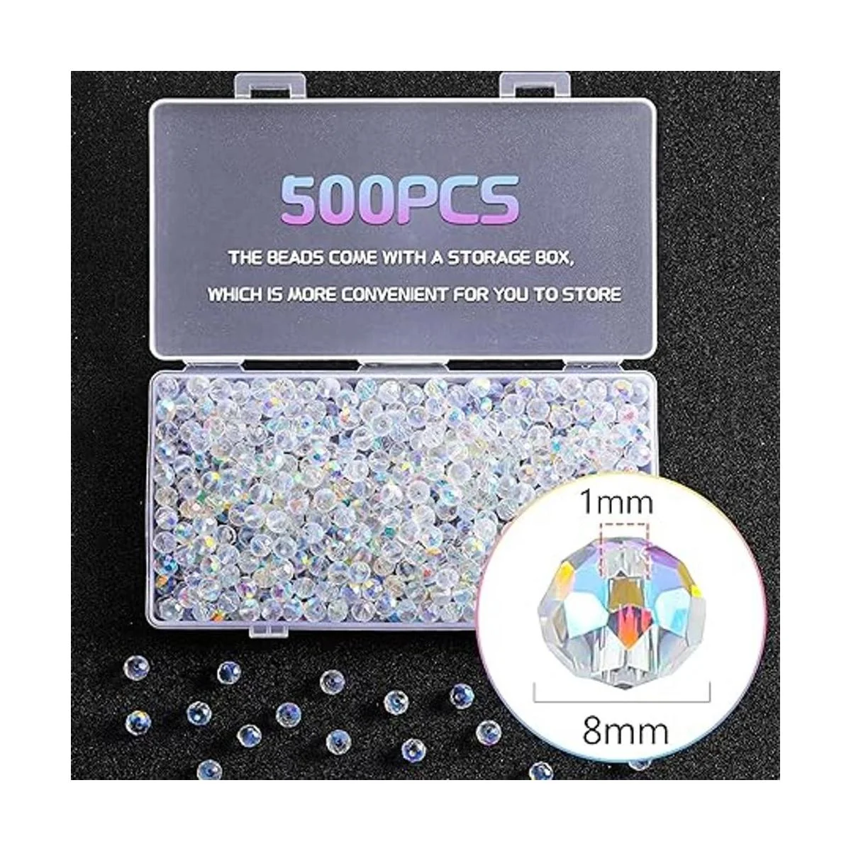 Cantidad de producto: hay 500 cuentas de vidrio AB, suficientes para que puedas usar y satisfacer tus diversas necesidades en la vida cotidiana, puedes hacer tipos de manualidades de joyería por ti mismo y disfrutar de la diversión del bricolaje