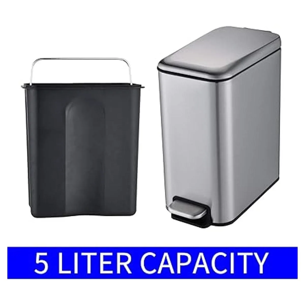 HILFA Cubo de basura rectangular compacto de acero inoxidable de 5 litros1.3 galones, cubo de basura de baño, cubo de basura de cocina, negro mate, SB3200MB