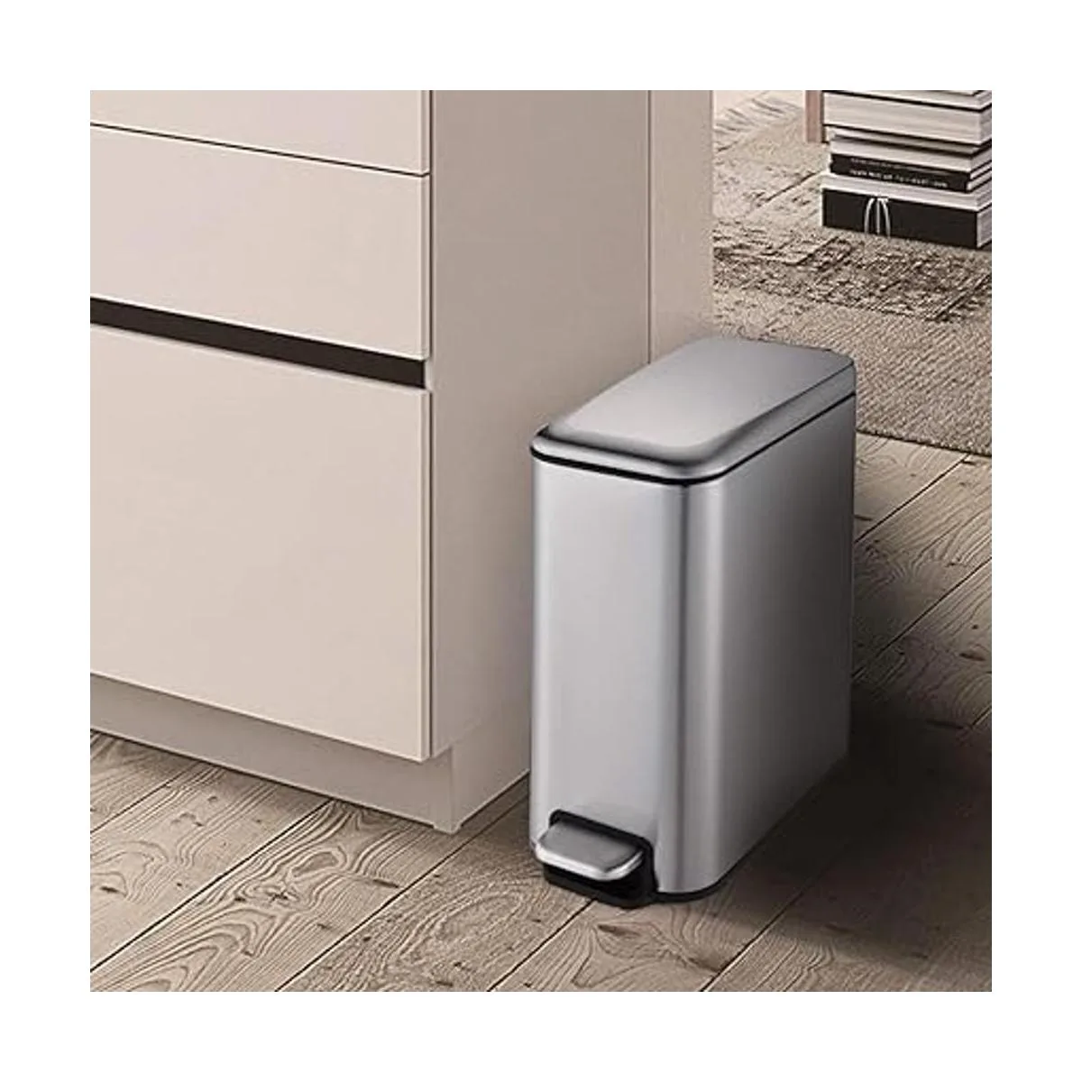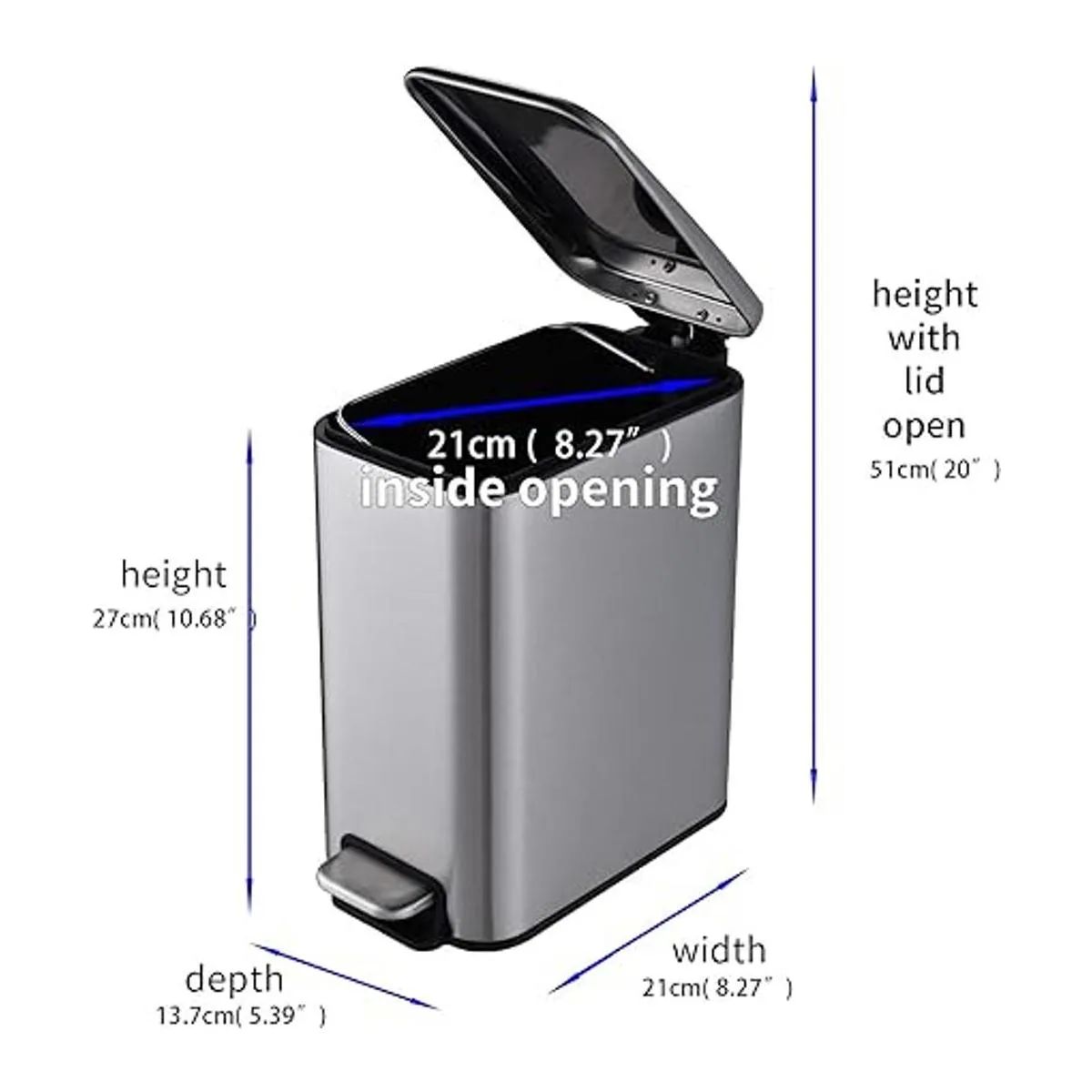 Funcional y versátil: el diseño de pasos significa que puedes operarlo con las manos libres, la tapa se recupera lentamente sin ningún ruido problemático. El cubo interior extraíble tiene asas, por lo que es tan fácil de vaciar.