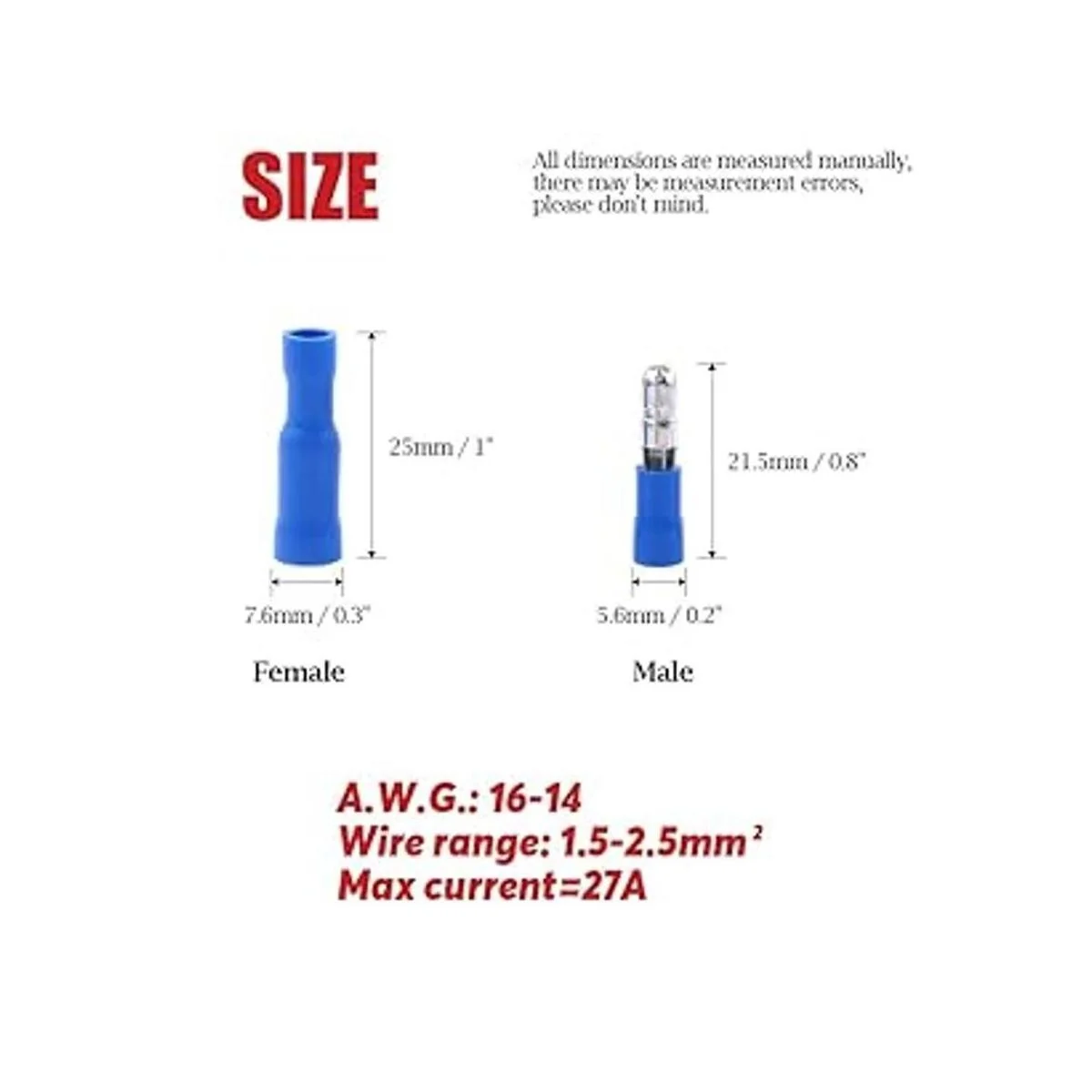 hilitchi 100pcs Calibre 16 14 con aislamiento machohembra bala Quick Splice Wire Terminals Crimp Conectores Set