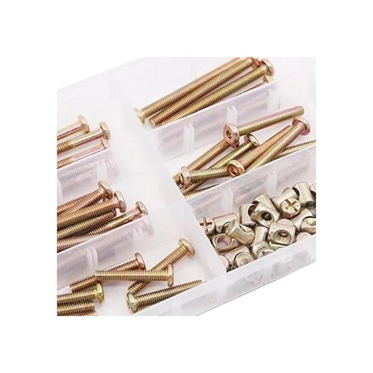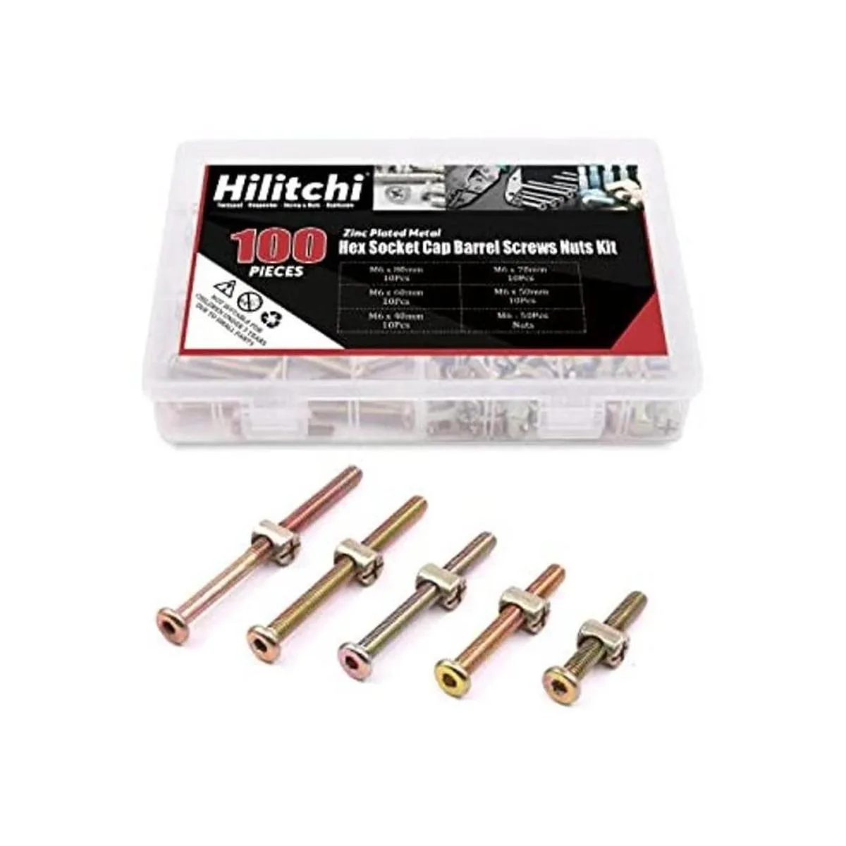 Hilitchi Juego de 100 tornillos de cuna chapados en zinc M6, tapa de enchufe hexagonal, tornillos de barril para muebles, cunas y sillas kit surtido de 1.575 in1.969 in2.362 in3.150 in