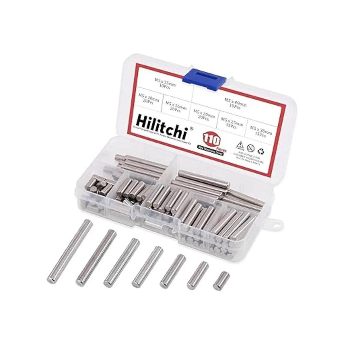 Hilitchi Kit surtido de elementos de sujeción de pasador de acero inoxidable de 110 piezas, tamaño que incluye 0.197 in x 0.394 in, 0.630 in, 0.787 in, 0.984 in, 1.181 in, 1.378 in, 1.575 in
