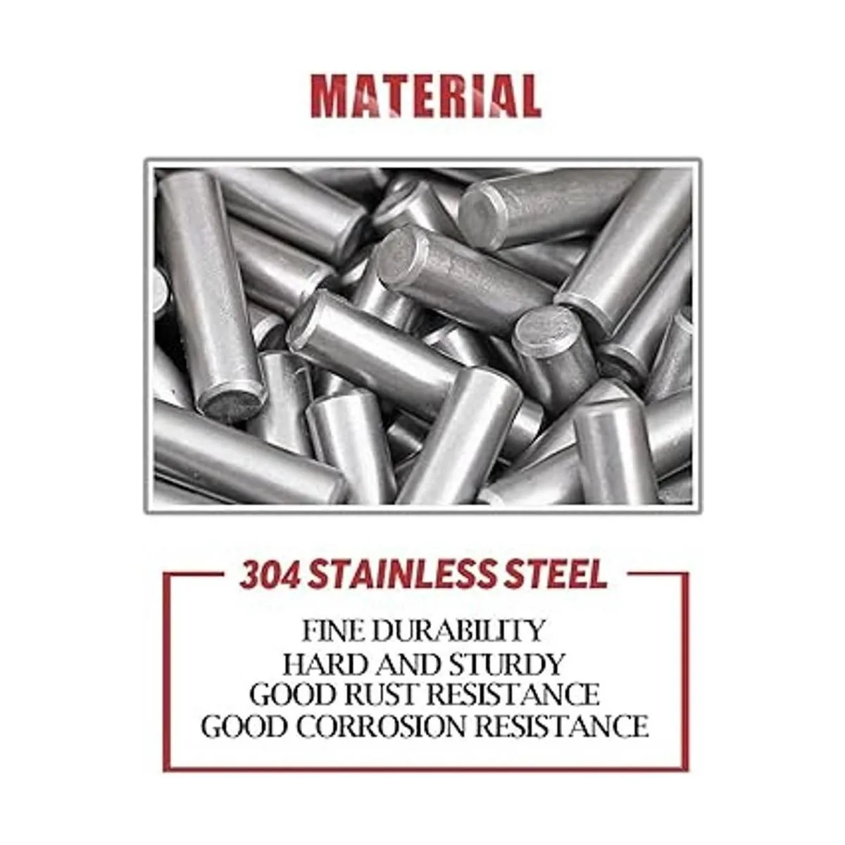 Hecho de acero inoxidable 304 de buena calidad y están endurecidos para evitar el desgaste, anticorrosión y duradero