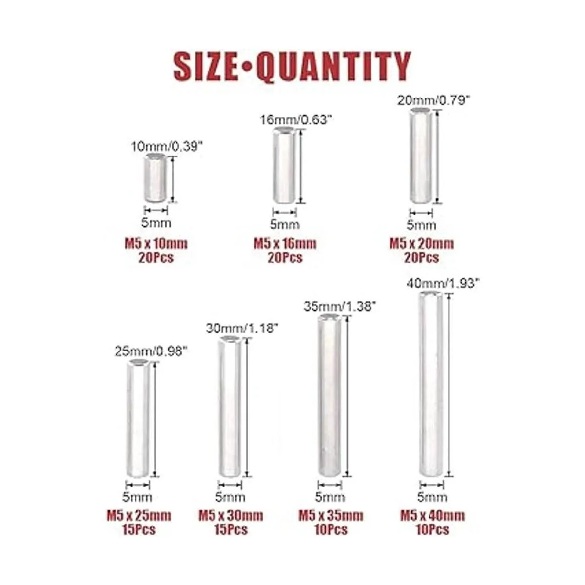 Estos pasadores de metal incluyen 7 tamaños más utilizados: 0.197 in x 0.394 in, 0.630 in, 0.787 in, 0.984 in, 1.181 in, 1.378 in, 1.575 in. Nota: comprueba la segunda imagen para más detalles de tamaño antes de comprar.