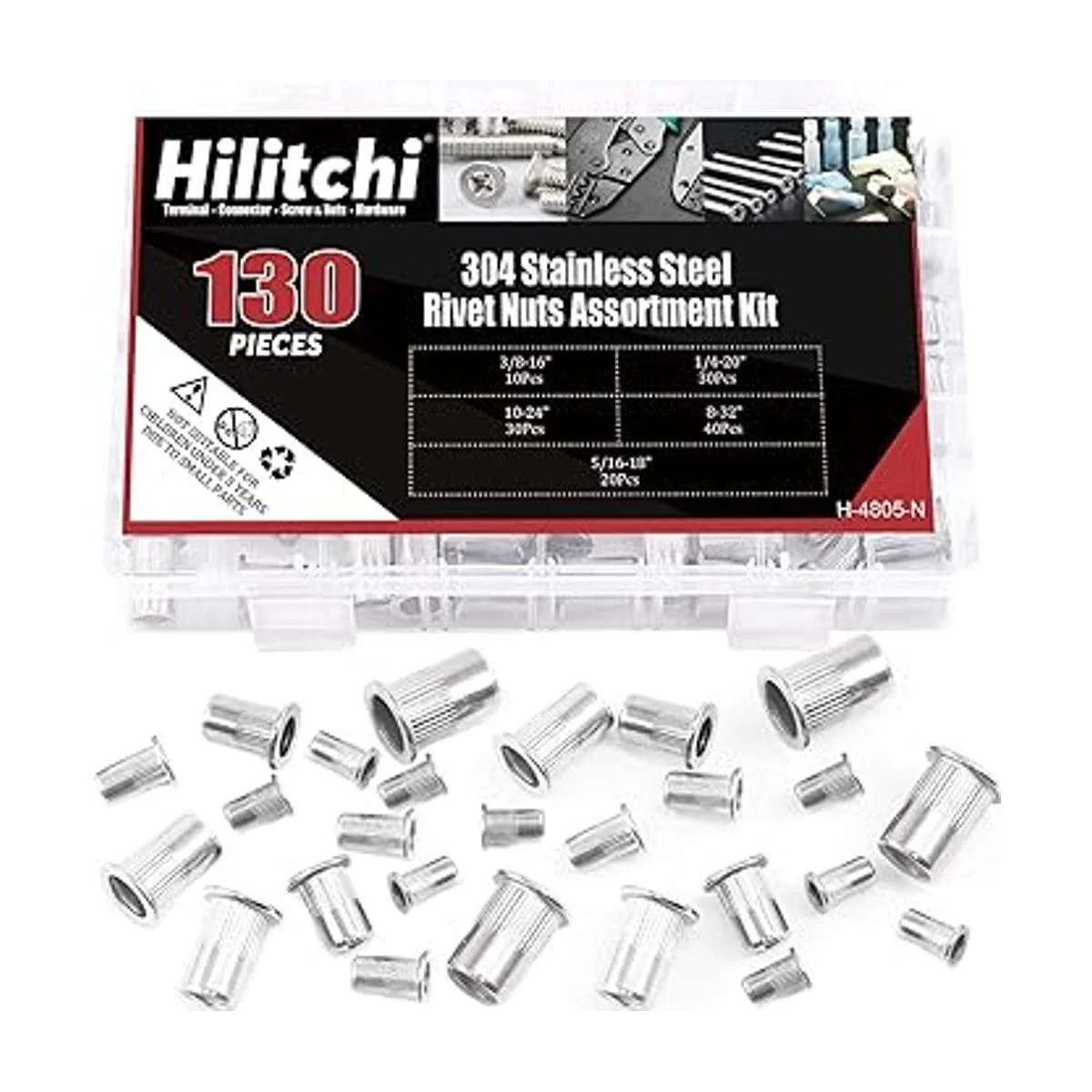 Hilitchi Tuercas de remache roscadas de acero inoxidable de 5 tamaños con remaches, 8 32, 10 24, 14 20, 516 18, 38 16 para decoración de muebles automotrices 85 unidades, SAE