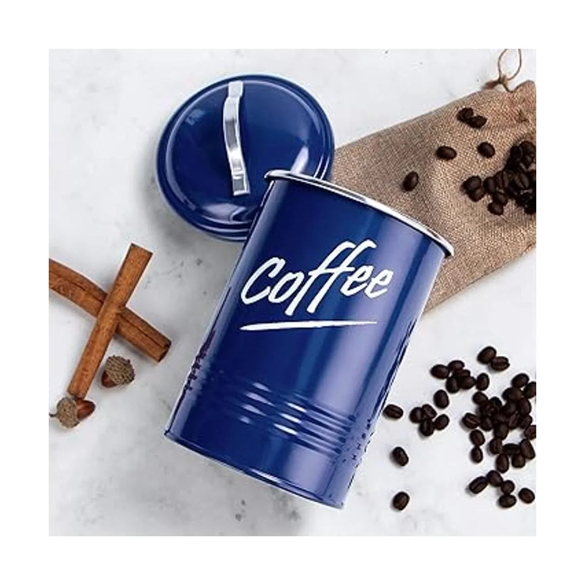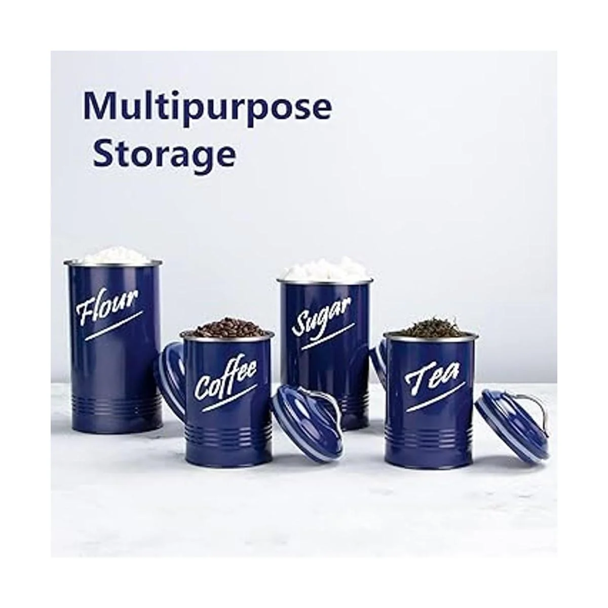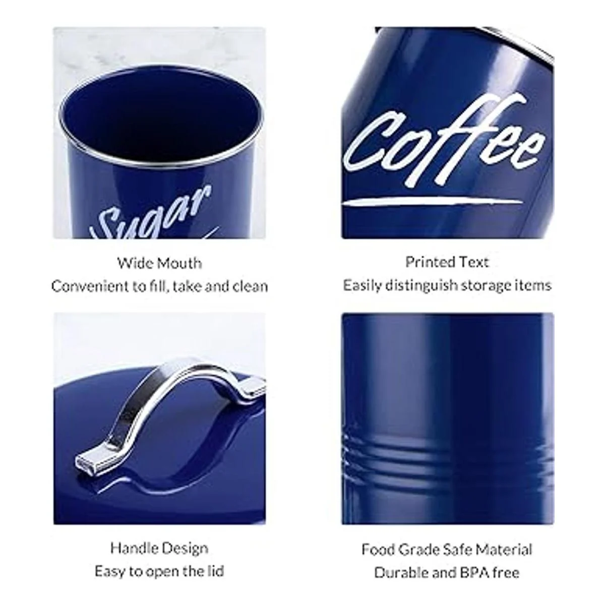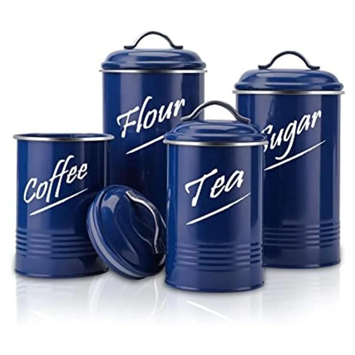 Hillbond Juego de 4 recipientes de almacenamiento de alimentos de color azul marino acero al carbono con recubrimiento de polvo decorativo, juego de 4 tarros de almacenamiento azul marino