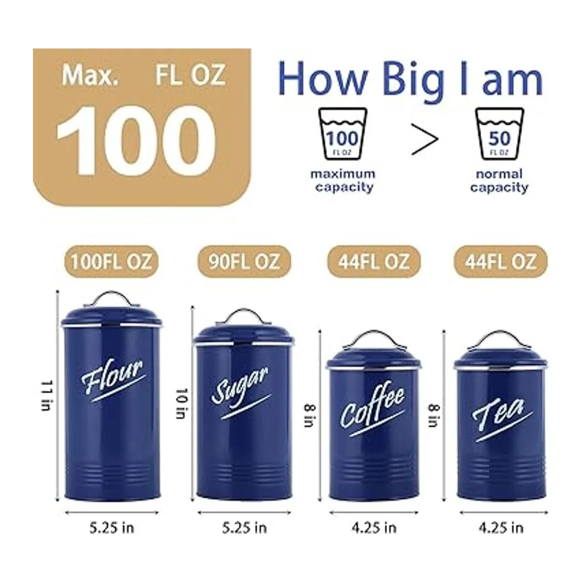Tamaño extra grande y almacenamiento de anidos: nuestro bote de té es de 4.25 pulgadas de profundidad x 8 pulgadas de alto, el bote de café es de 4.25 pulgadas de profundidad x 8 pulgadas de alto, el bote de azúcar es de 5.25 pulgadas de profundidad x 8 pulgadas de alto, el bote de harina es de 5.25 pulgadas de profundidad x 9 pulgadas de alto. Desea almacenar unos meses de granos de café, azúcar, harina, galletas y más para su familia En Hillbond tenemos una solución completa para tus necesidades de almacenamiento de cocina. Lavar a mano solamente. No apto para lavavajillas, microondas o horno. Nota: comprueba cuidadosamente las dimensiones antes de realizar el pedido.