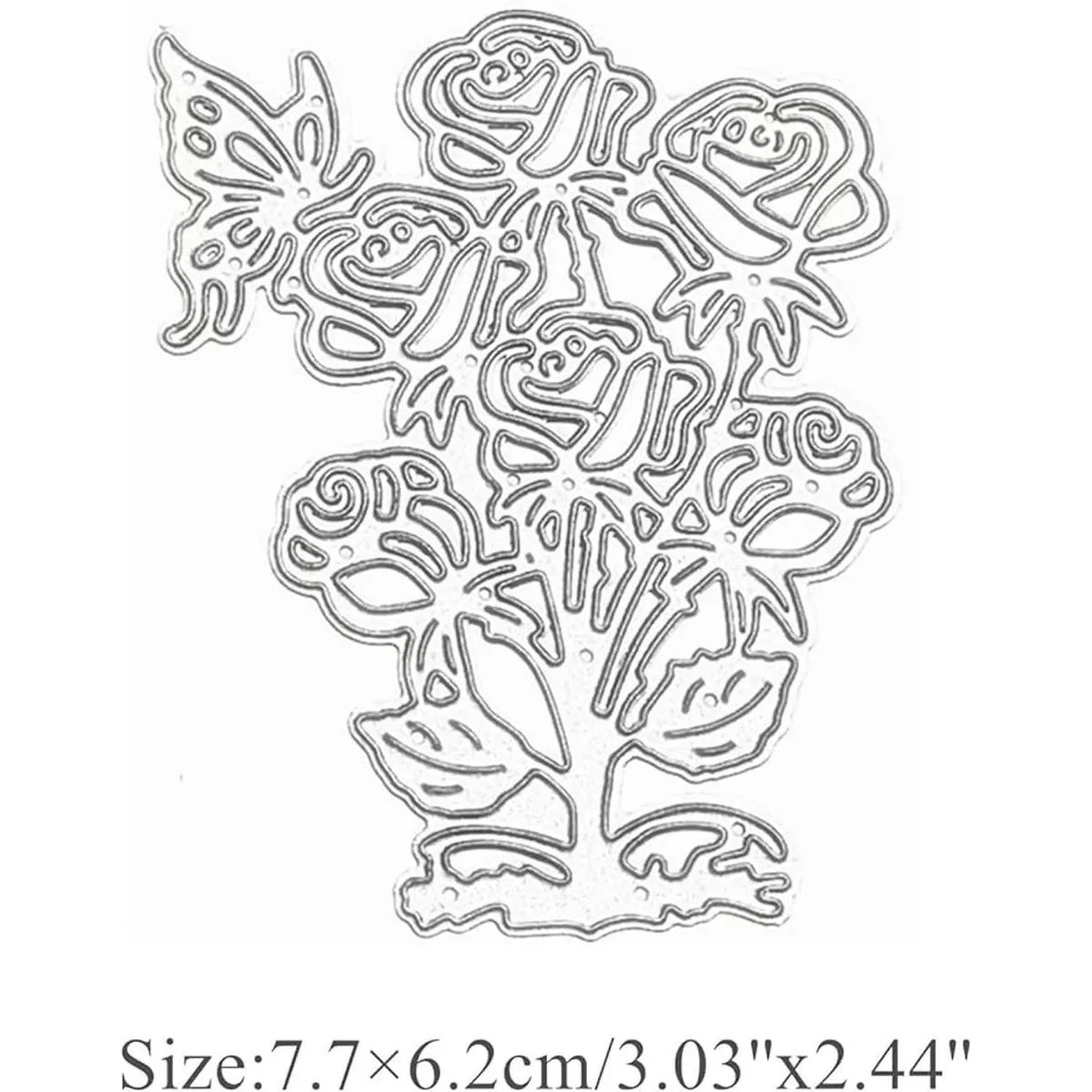 Color y tamaño: color: plateado. Tamaño: 3.0 x 2.4 in. El paquete incluye: el juego de troqueles de corte contiene 1 unidad/juego de plantillas de metal con patrón de flores de rosa.