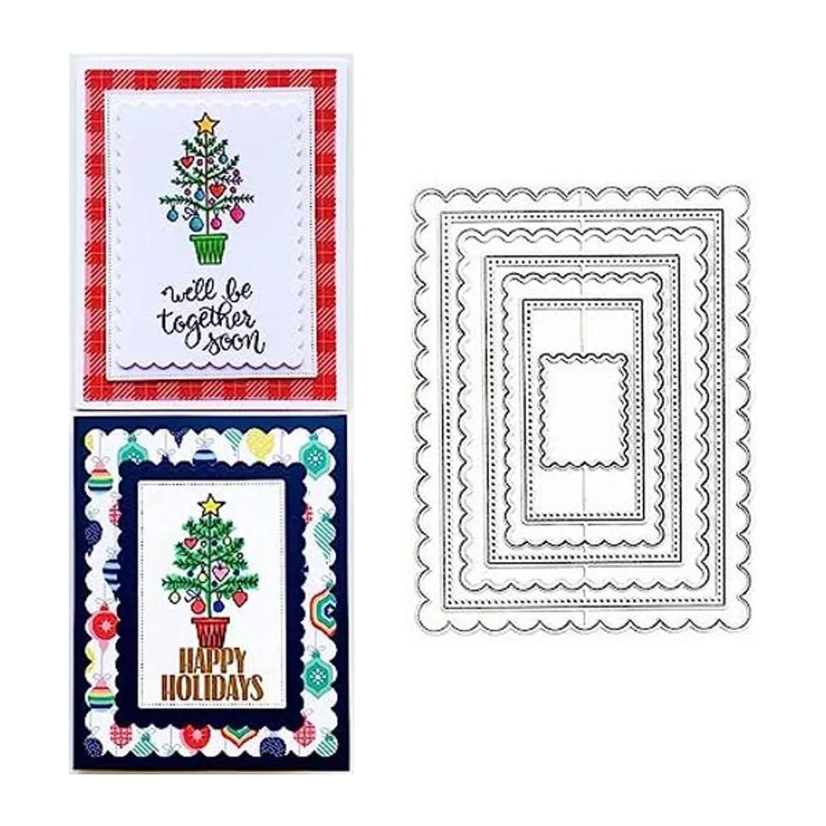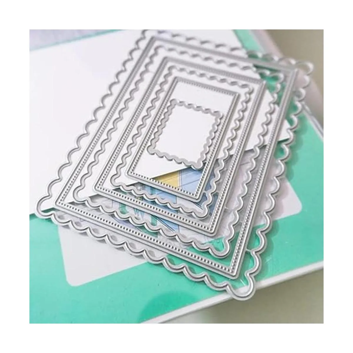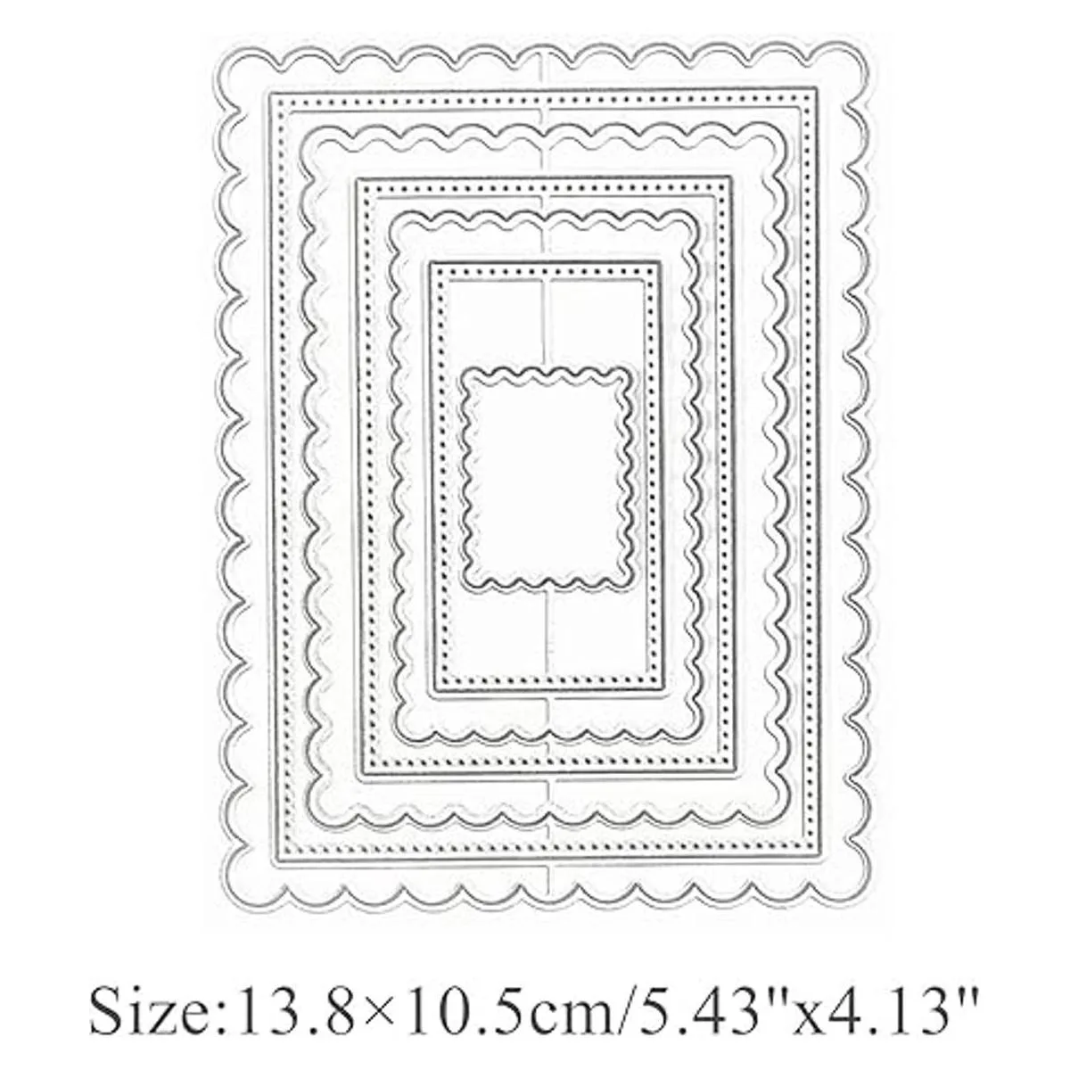 Color y tamaño: color: plateado. Tamaño: 5.4 x 4.1 in. El paquete incluye: el juego de troqueles de corte contiene 1 unidad/juego de plantillas de metal con patrón de marco rectangular festoneado.