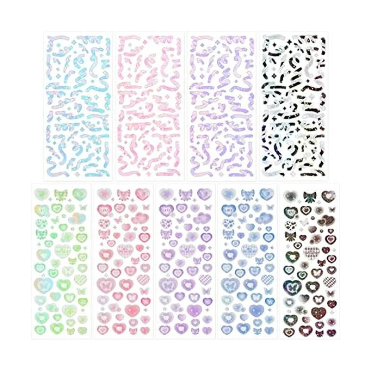 HINZIC Juego de 18 hojas de calcomanías coreanas Kpop, calcomanías de decoración autoadhesivas con purpurina colorida con cinta, estilo mariposa, lindas calcomanías coreanas decorativas para álbumes de recortes, decoración de manualidades, manualidades, niños