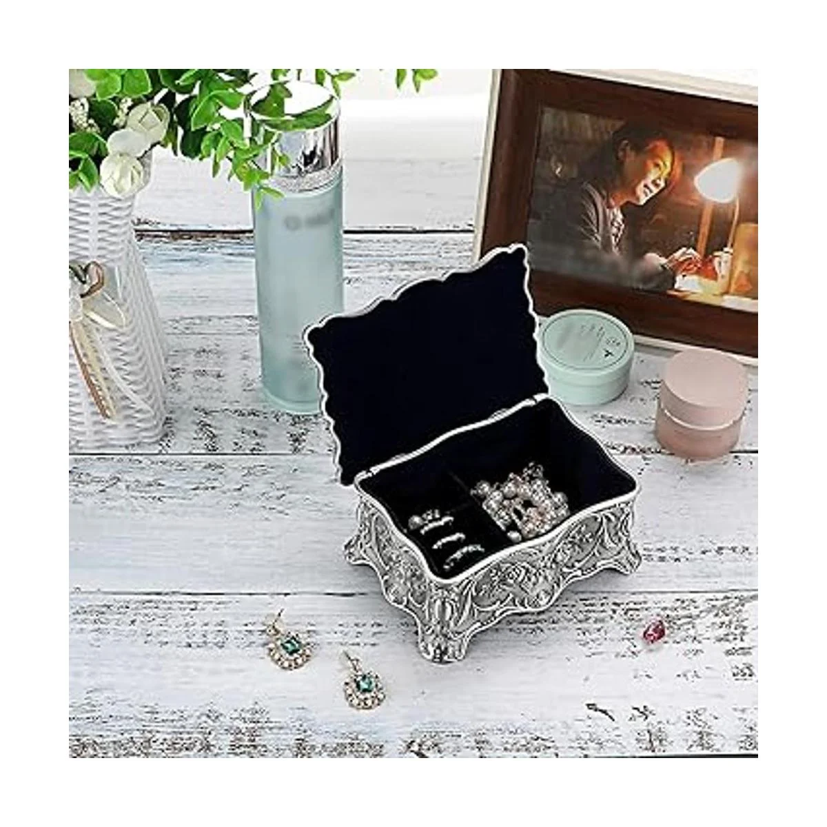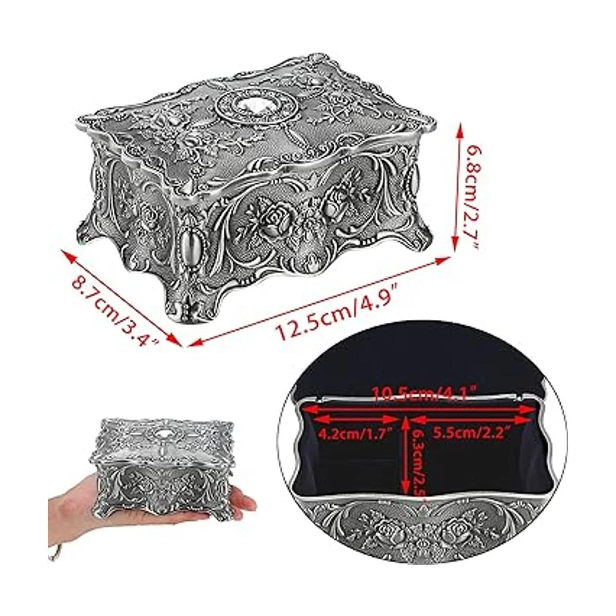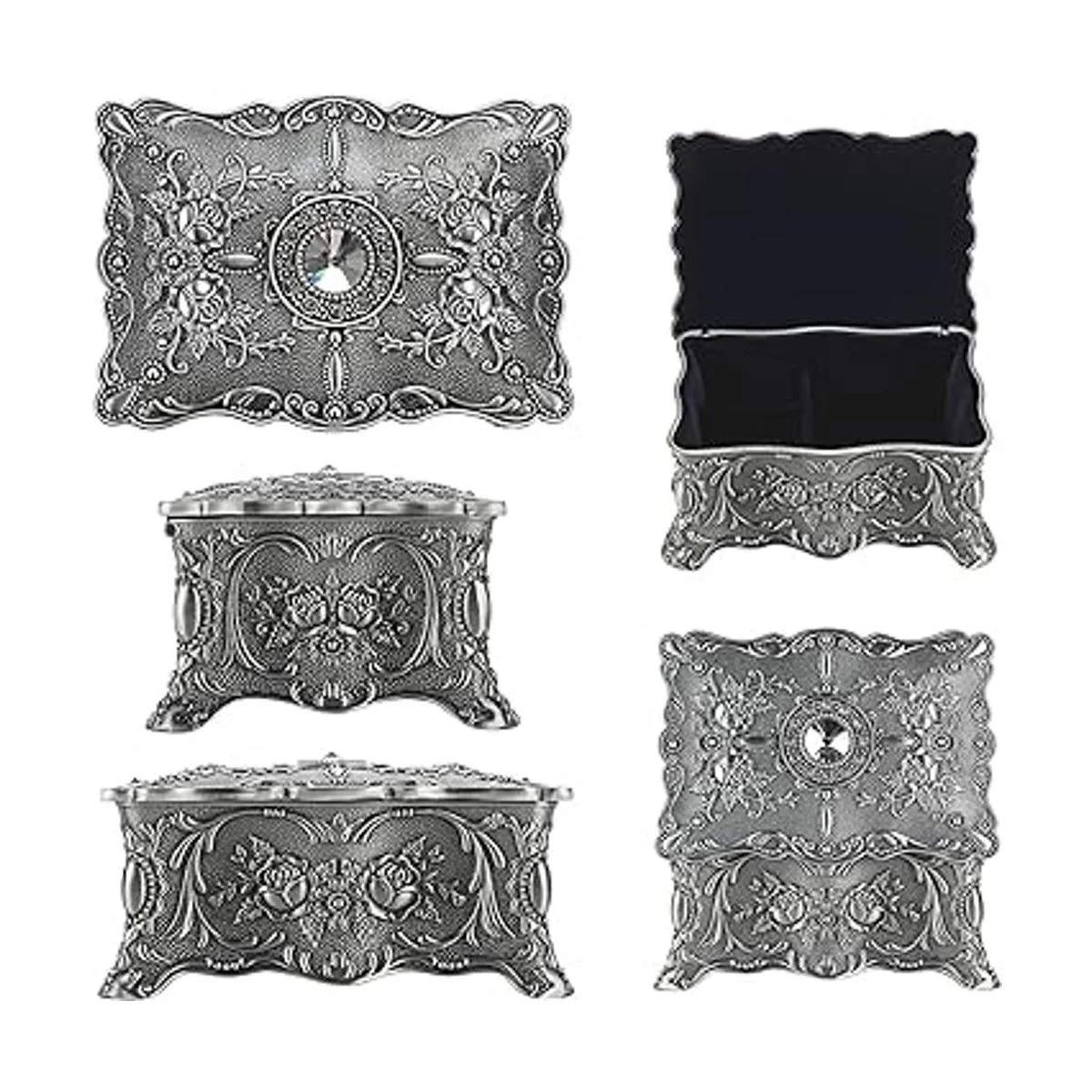 Hipiw Caja organizadora de joyas vintage Caja de almacenamiento de baratijas de metal adornada del pecho del tesoro caja decorativa de joyería, caja de regalo de recuerdo para mujeres y niñas, 4.9 x 3.4 x 2.7 pulgadas