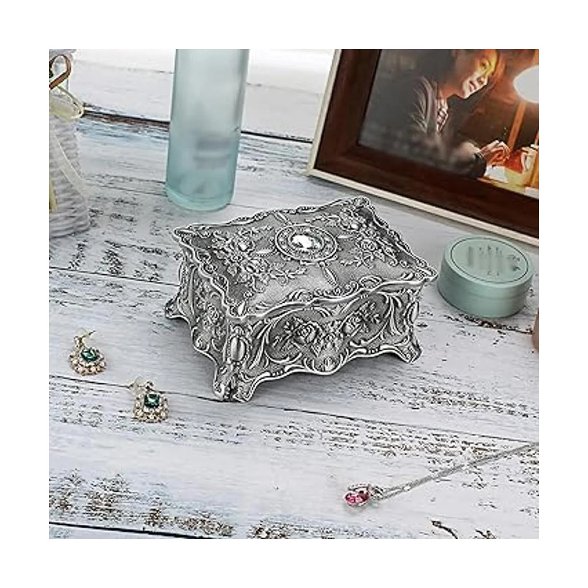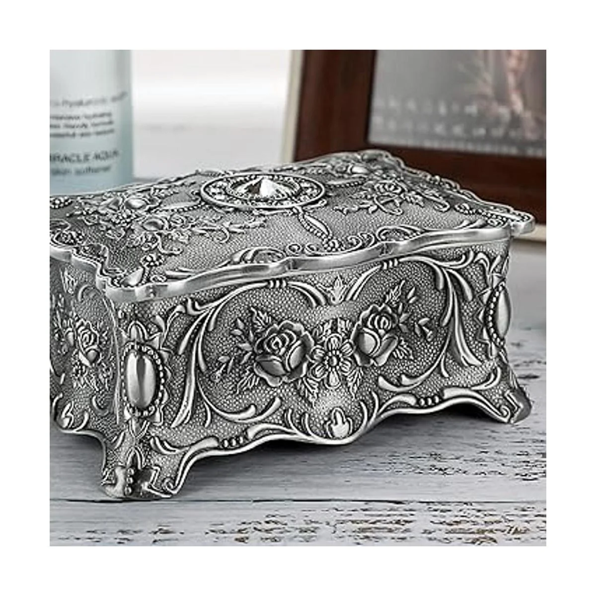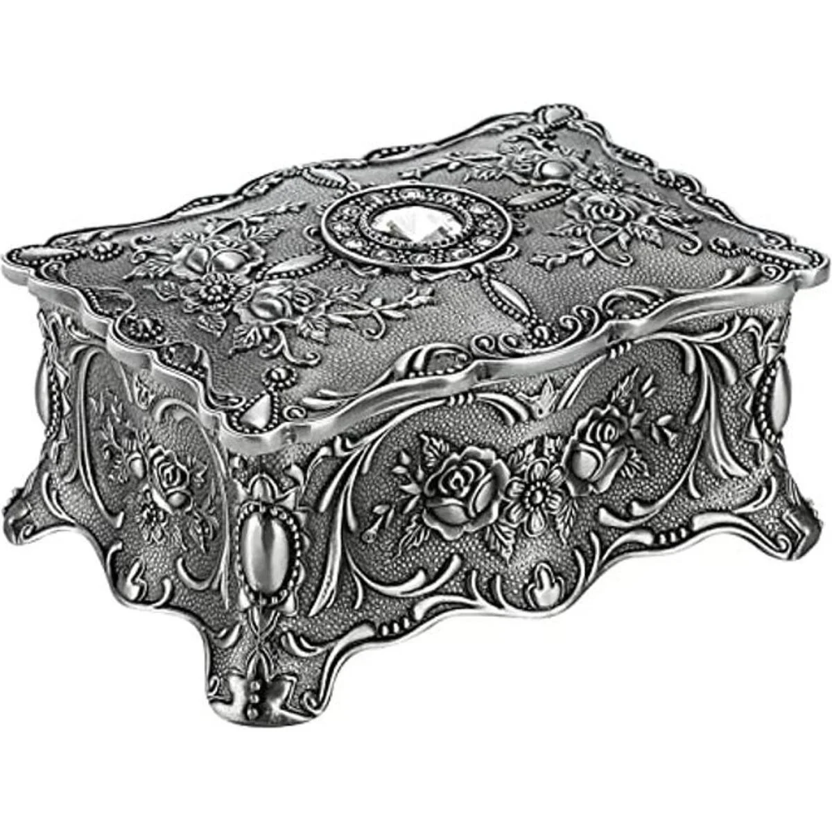 Hipiw Caja organizadora de joyas vintage Caja de almacenamiento de baratijas de metal adornada del pecho del tesoro caja decorativa de joyería, caja de regalo de recuerdo para mujeres y niñas, 4.9 x 3.4 x 2.7 pulgadas