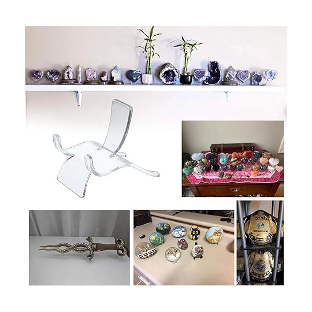 Hipiwe 10 paquetes de soportes triangulares acrílicos Caballete de exhibición de plástico transparente para geodas, roca, ágata mineral, fósil, coral, pequeños soportes de exhibición coleccionables, tamaño grande