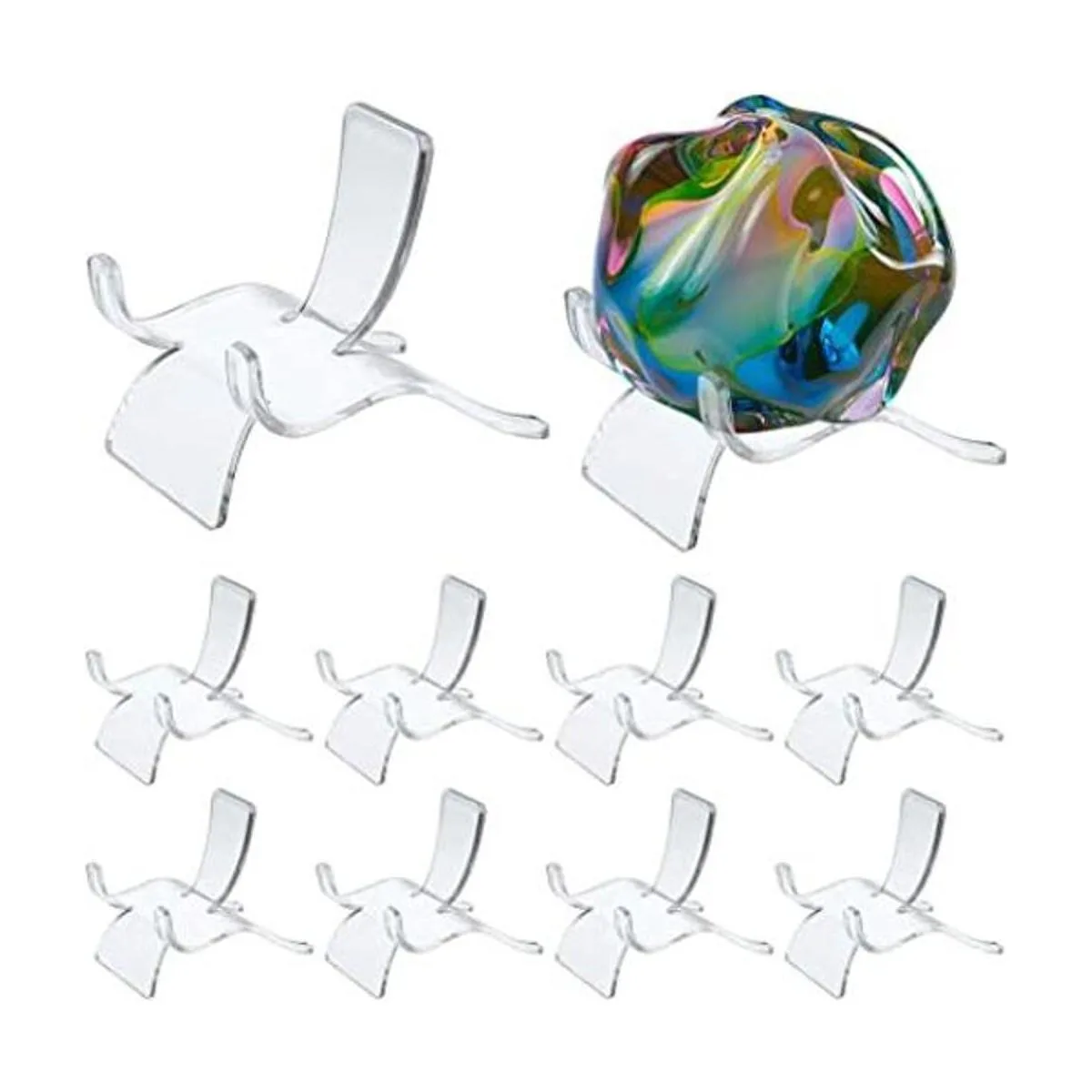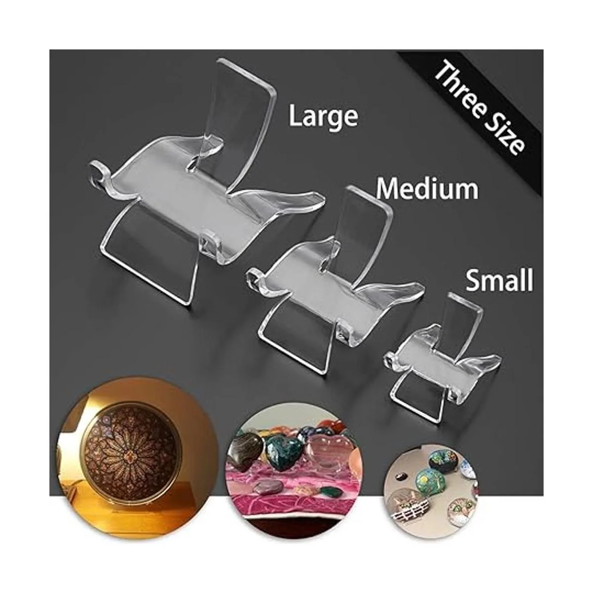 Paquete de 10 Tamaño largo x alto x ancho: 2.3 x 3.15 x 2.4 pulgadas; tamaño pequeño y peso ligero, fácil de almacenar y transportar; el paquete incluye 10 soportes de caballete acrílicos, suficiente para tu repuesto o reemplazo piedra no incluida